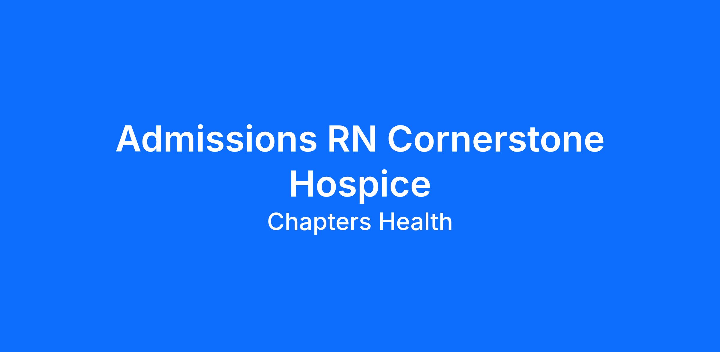 The Admission RN assesses patients in their place of residency or in hospitals and initiates care into the services of Chapters Health System. Ensures a seamless transition to Care Navigation and serves as an ambassador of the Organization.