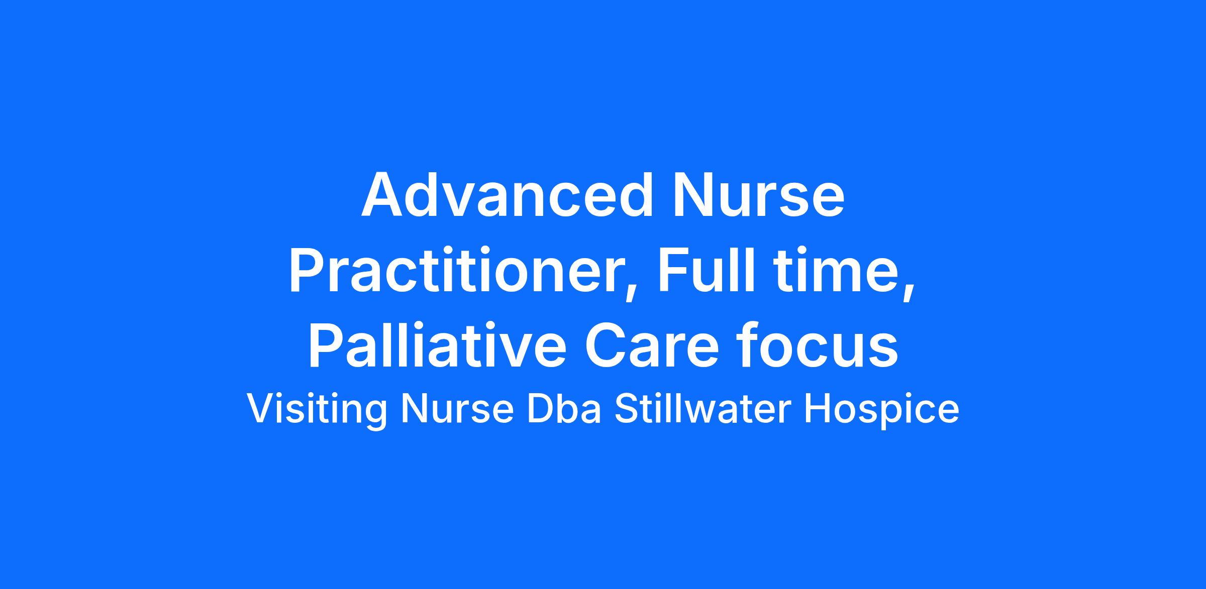 In this role, you'll care for patients in the Stillwater Hospice Service Area.