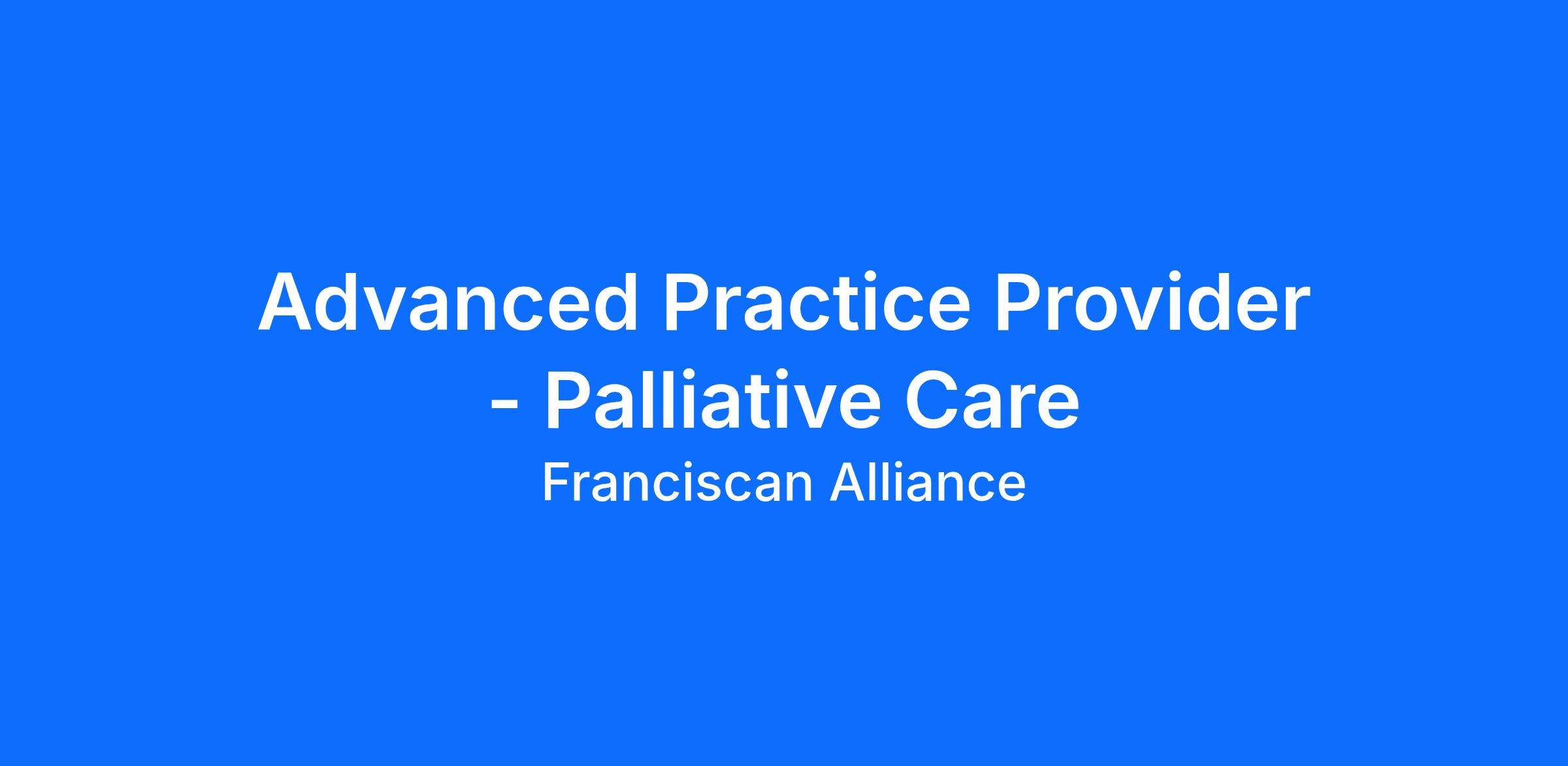 Franciscan Physician Network is seeking a full-time Nurse Practitioner or Physician Assistant with Palliative Care experience for a position at Franciscan Hospice & Home Care in Hobart, IN to meet the growing demands for outpatient Hospice and Palliative Care services. Provider will see patients in various venues of care such as personal residence, assisted living facilities, and skilled nursing facilities.