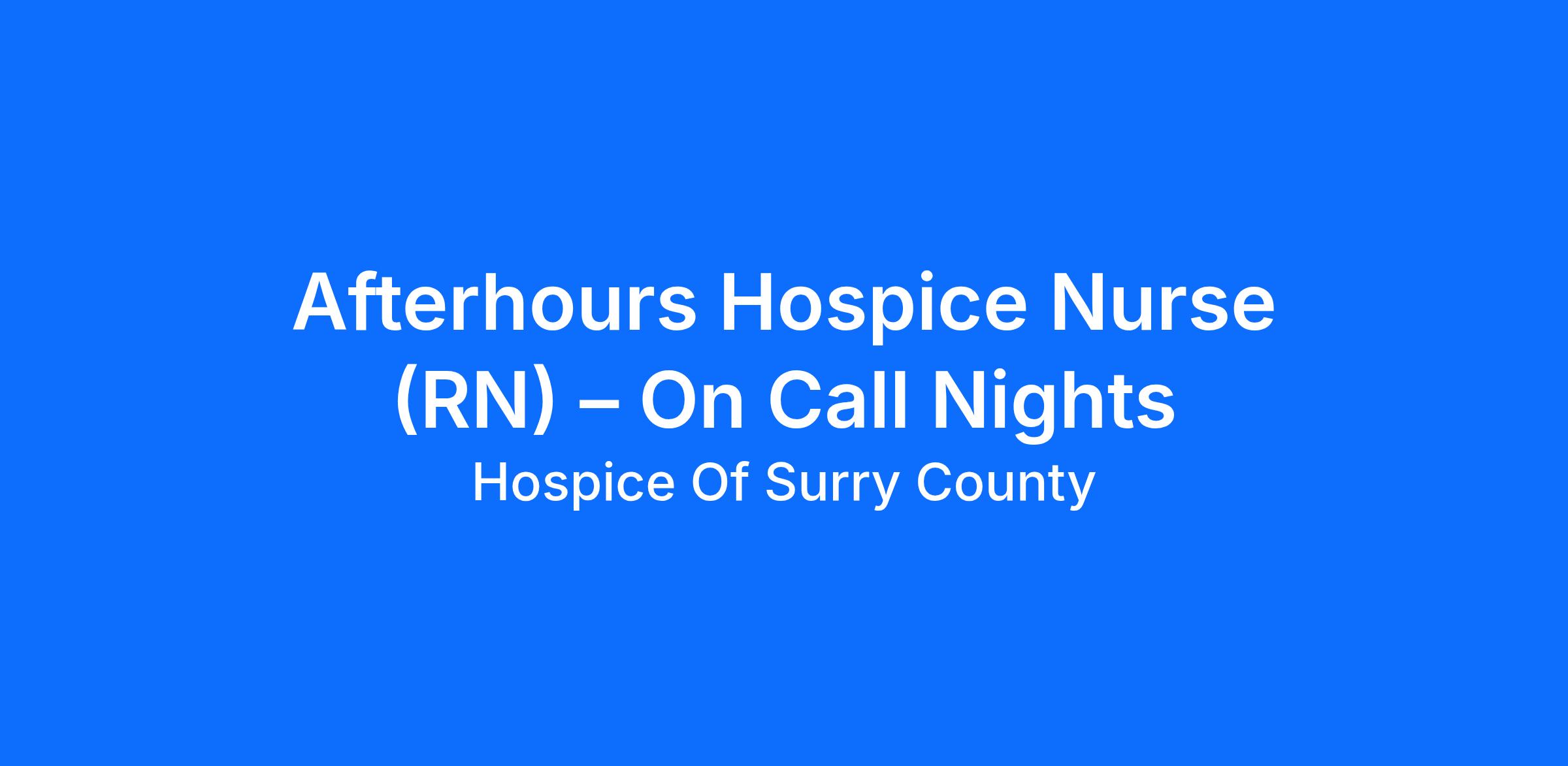 Afterhours Hospice Nurse (RN) – Weeknights (Mon–Thurs)