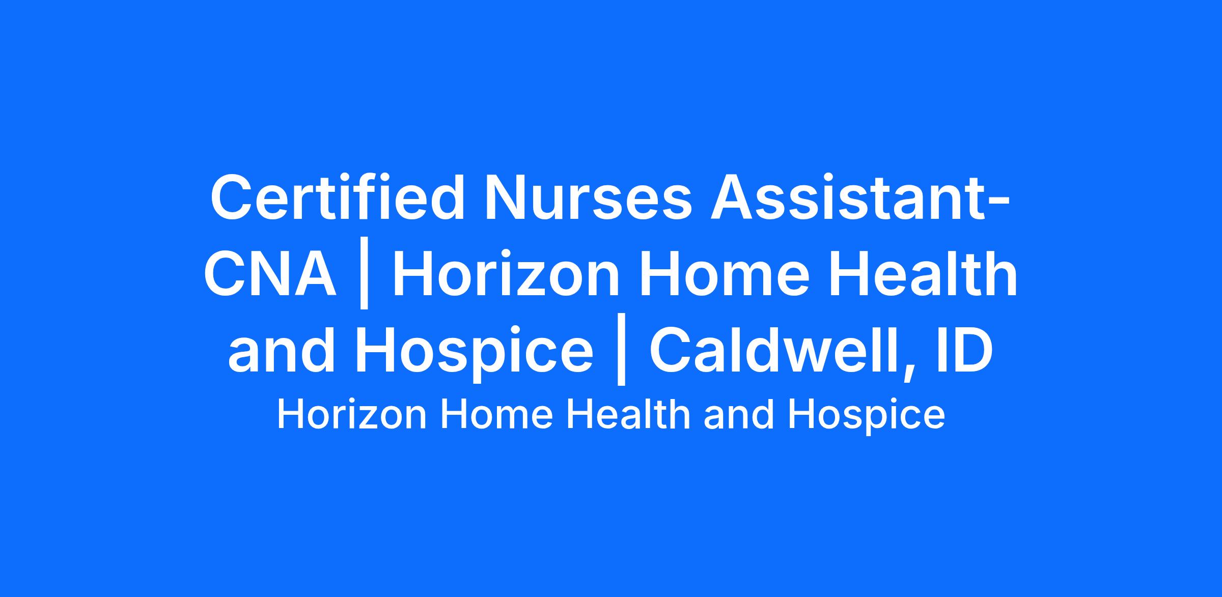 Do you have a passion for health care and a passion for life? If so, join the team that is committed to providing excellence in nursing and life-changing care! Horizon Home Health & Hospice is looking for CNA's in the Caldwell, Idaho area who are compassionate, have strong clinical skills and enjoy being a part of an amazing team. To learn more about Horizon Home Health & Hospice, please visit www.horizonhh.com.