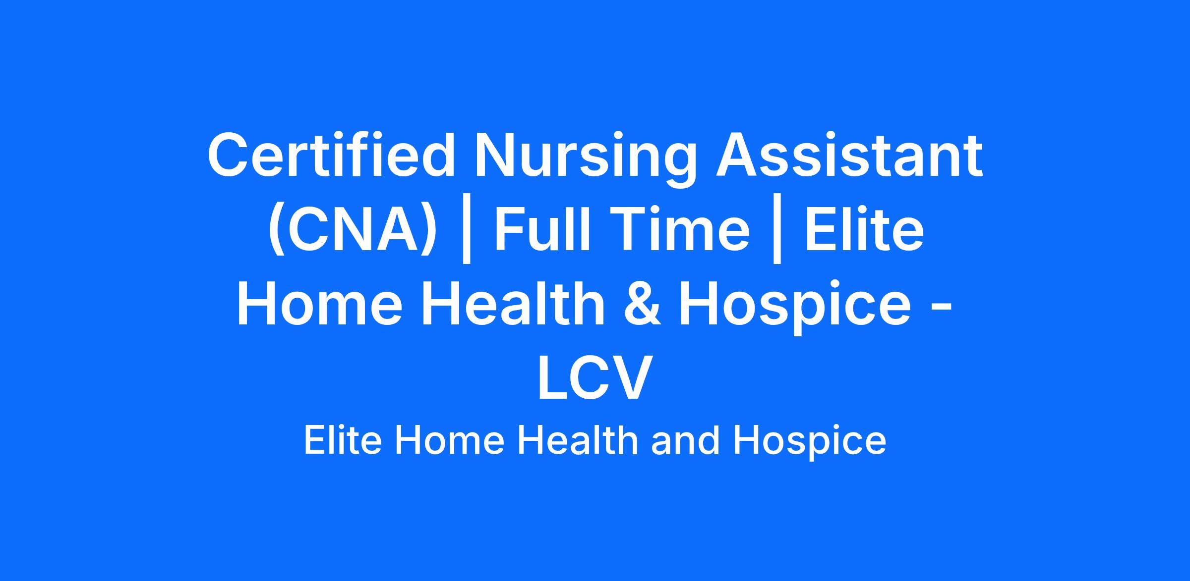 Elite is seeking compassionate and dedicated certified nursing assistants (CNA) to join our team in providing exceptional home health and hospice care. The agency is driven by our CAPLICO core values - Celebration, Accountability, Passion for Learning, Love One Another, Intelligent Risk Taking, Customer Second, and Ownership. These principles guide our commitment to delivering high-quality, personalized care that allows patients to remain in the comfort of the own homes. As a nurse with Elite, you'll play a vital role in "Keeping Our Community Home", fostering meaningful connections, and ensuring patients receive the best possible care. Join us in making a difference in the lives of those we serve, while embracing a culture of compassion, respect, and excellence. If you’re passionate about providing quality care and value teamwork, this could be a great fit!