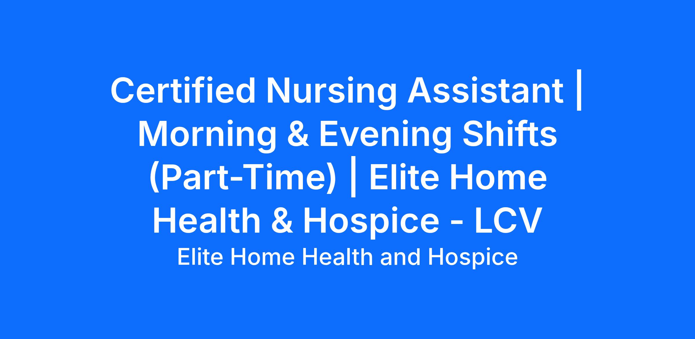 Elite is seeking compassionate and dedicated certified nursing assistants (CNA) to join our team in providing exceptional home health and hospice care. The agency is driven by our CAPLICO core values - Celebration, Accountability, Passion for Learning, Love One Another, Intelligent Risk Taking, Customer Second, and Ownership. These principles guide our commitment to delivering high-quality, personalized care that allows patients to remain in the comfort of the own homes. As a nurse with Elite, you'll play a vital role in "Keeping Our Community Home", fostering meaningful connections, and ensuring patients receive the best possible care. Join us in making a difference in the lives of those we serve, while embracing a culture of compassion, respect, and excellence. If you’re passionate about providing quality care and value teamwork, this could be a great fit!