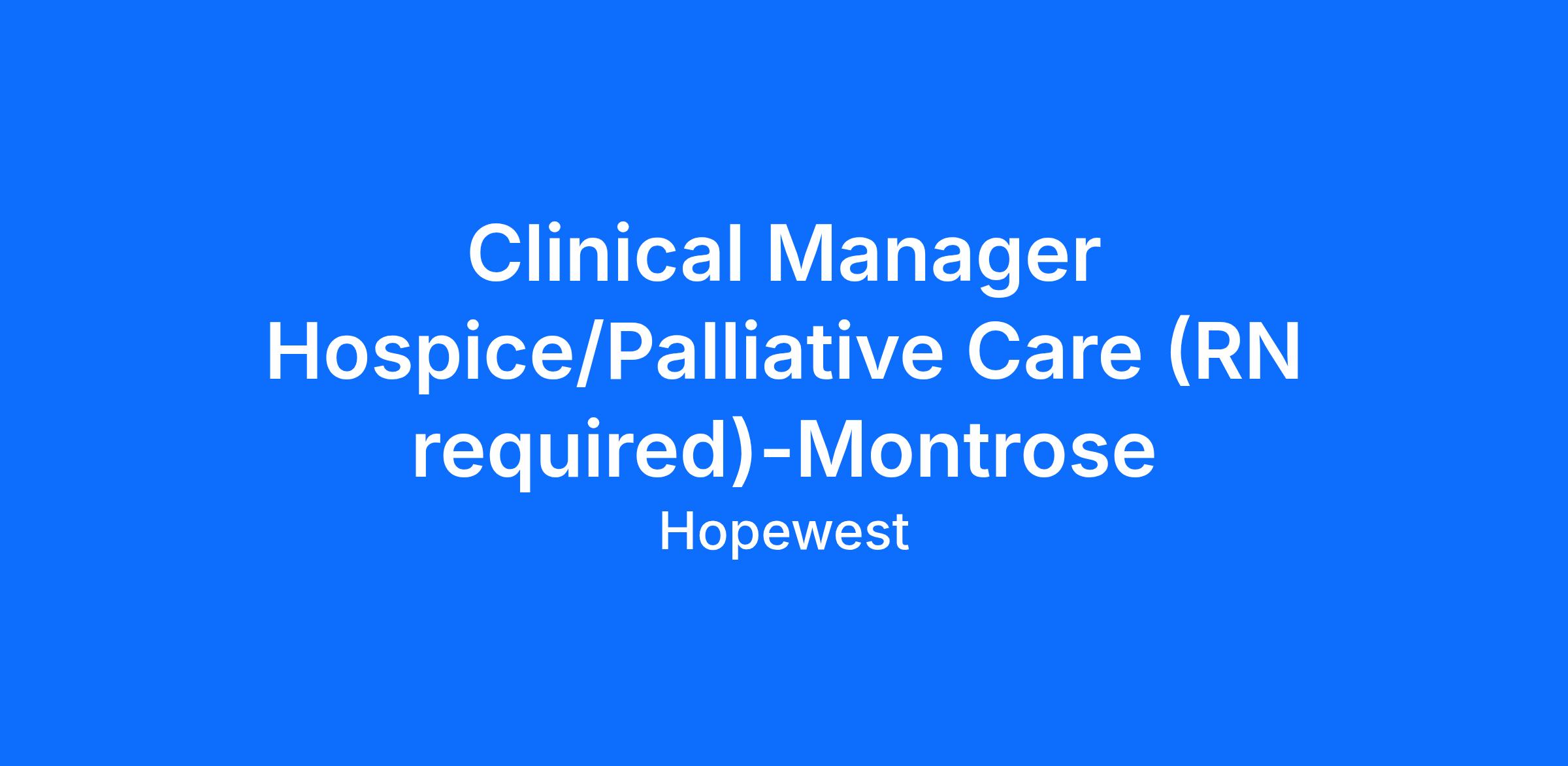 Clinical Manager Hospice/Palliative Care (RN required)-Montrose