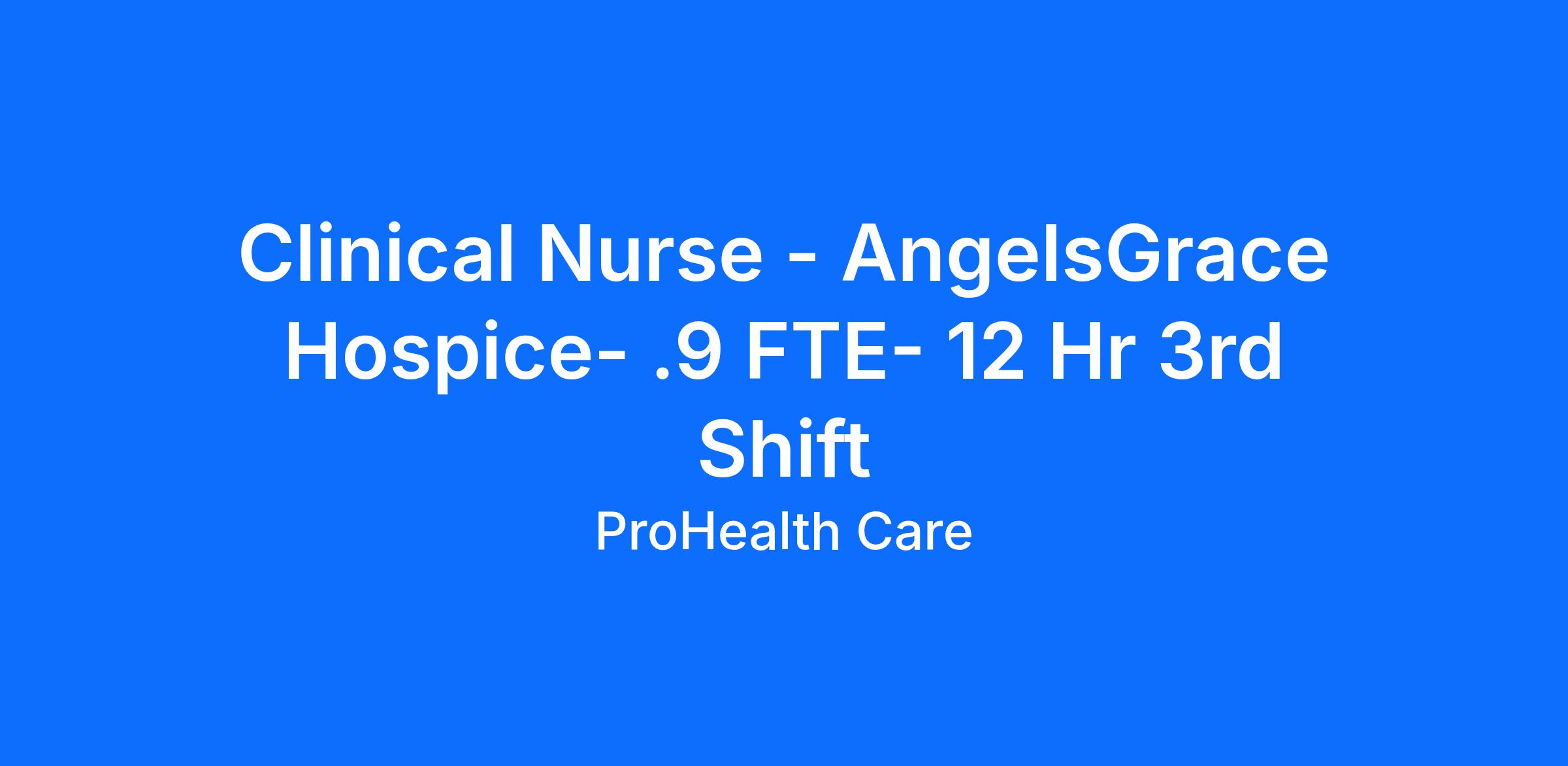 We Are Hiring: Clinical Nurse - AngelsGrace Hospice- .9 FTE- 12 Hr 3rd Shift