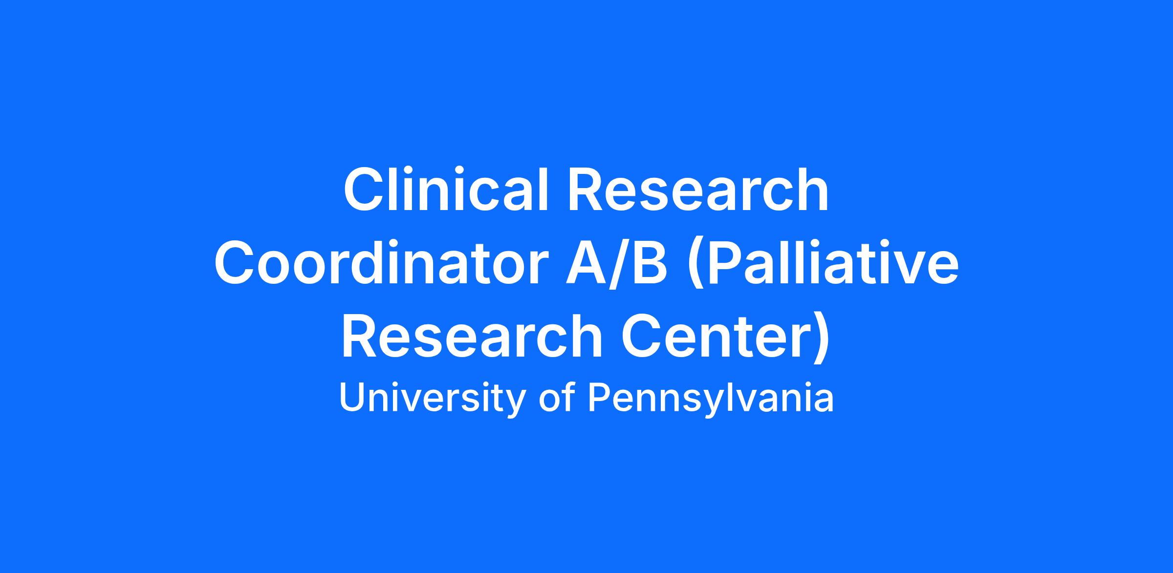 Clinical Research Coordinator A/B (Palliative Research Center)Job Profile Title