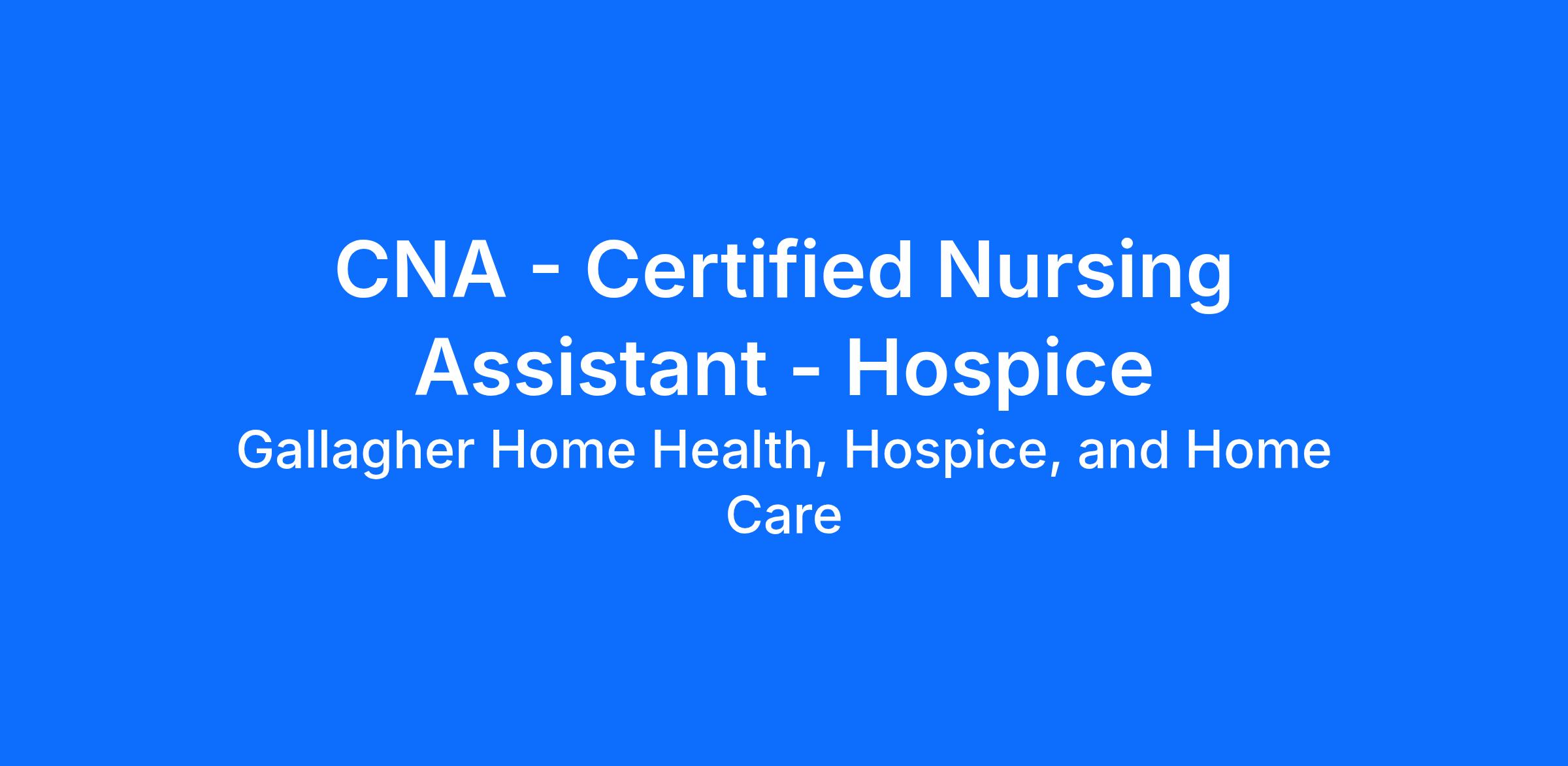 Gallagher Hospice is growing and needs CNAs: