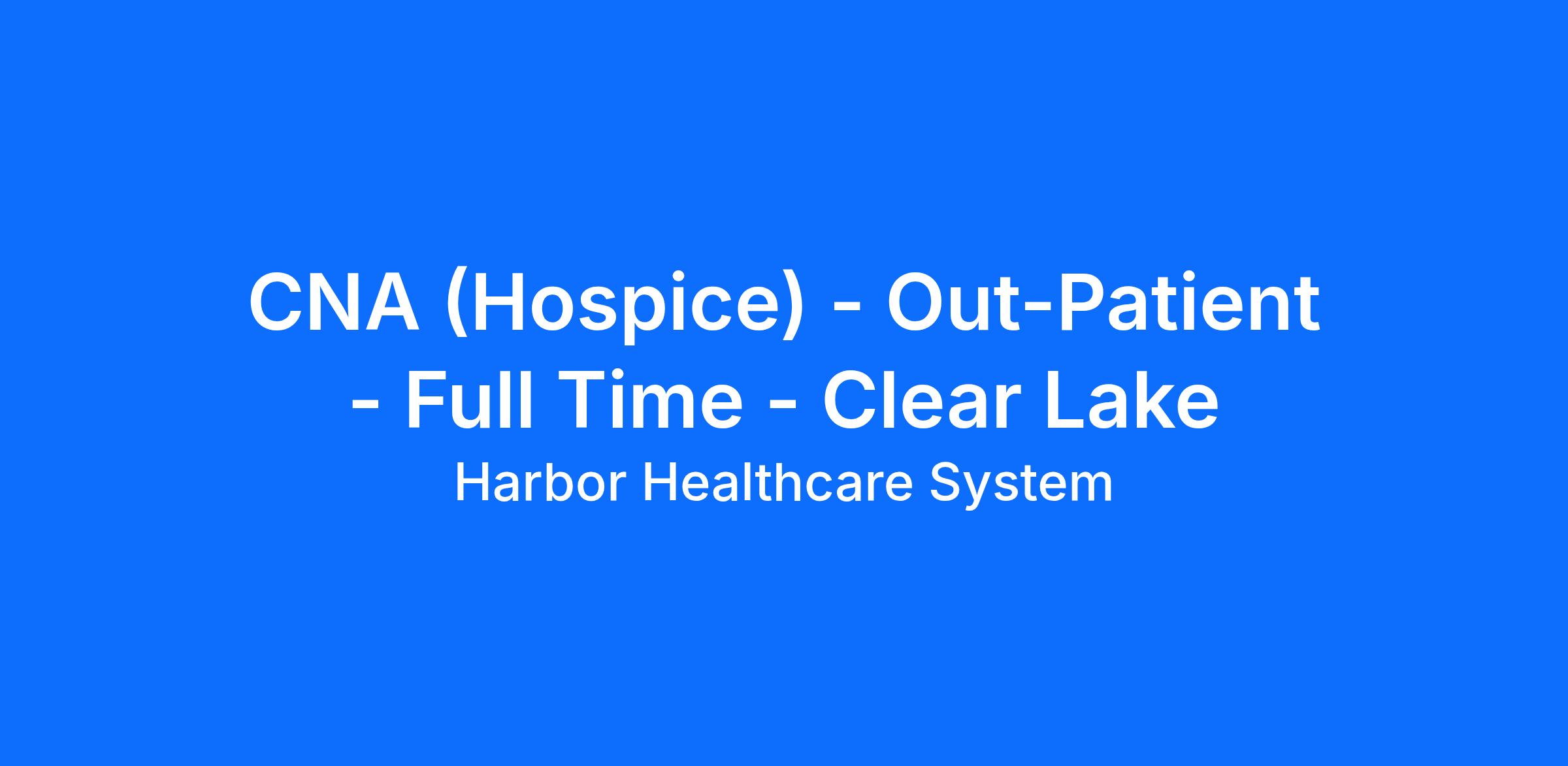 CNA (Hospice) - Out-Patient - Full Time - Clear Lake