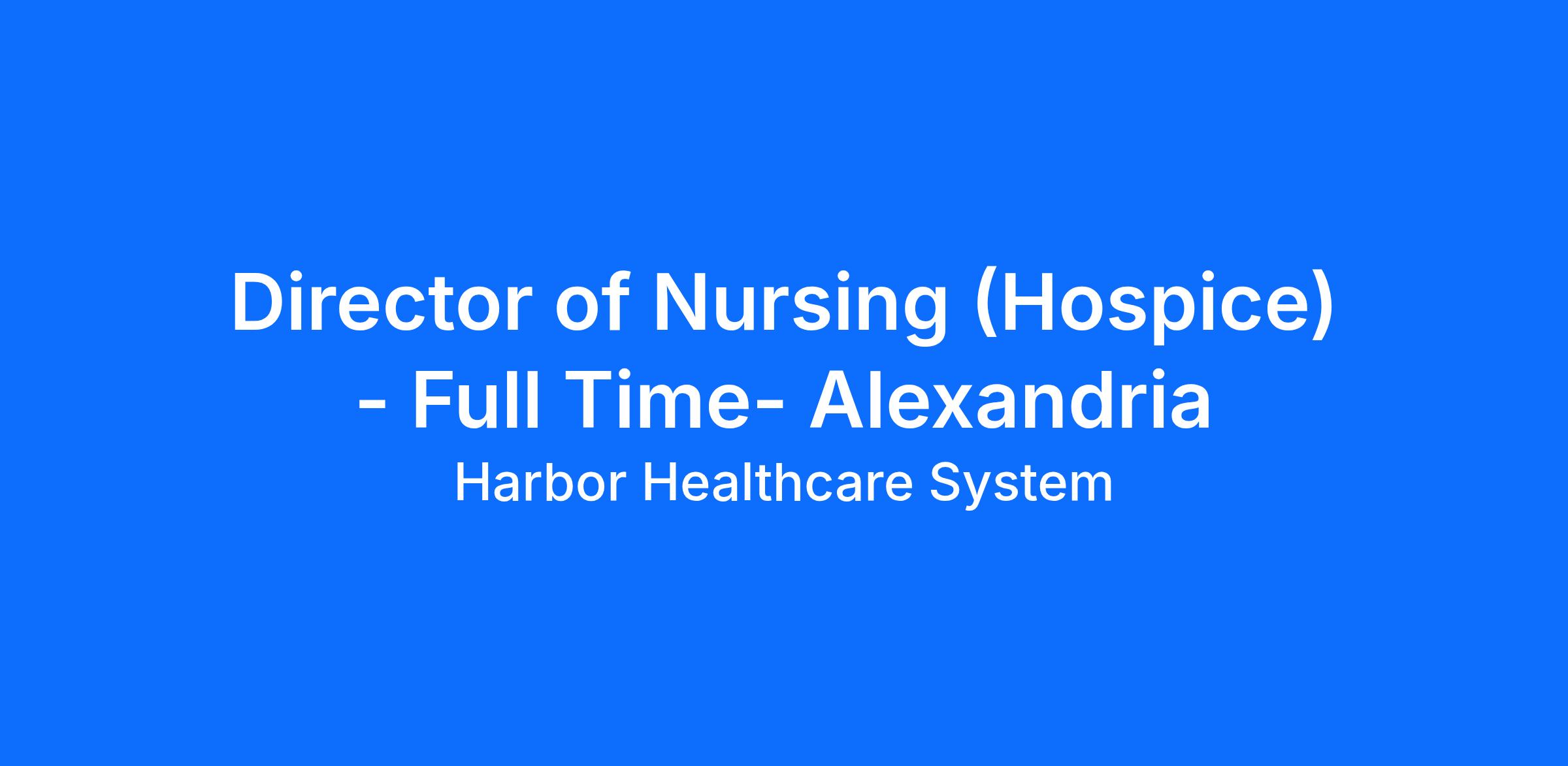 Harbor Healthcare is recruiting for Harbor Hospice of Alexandria. Please apply directly through this website, complete the online application, and attach resume.