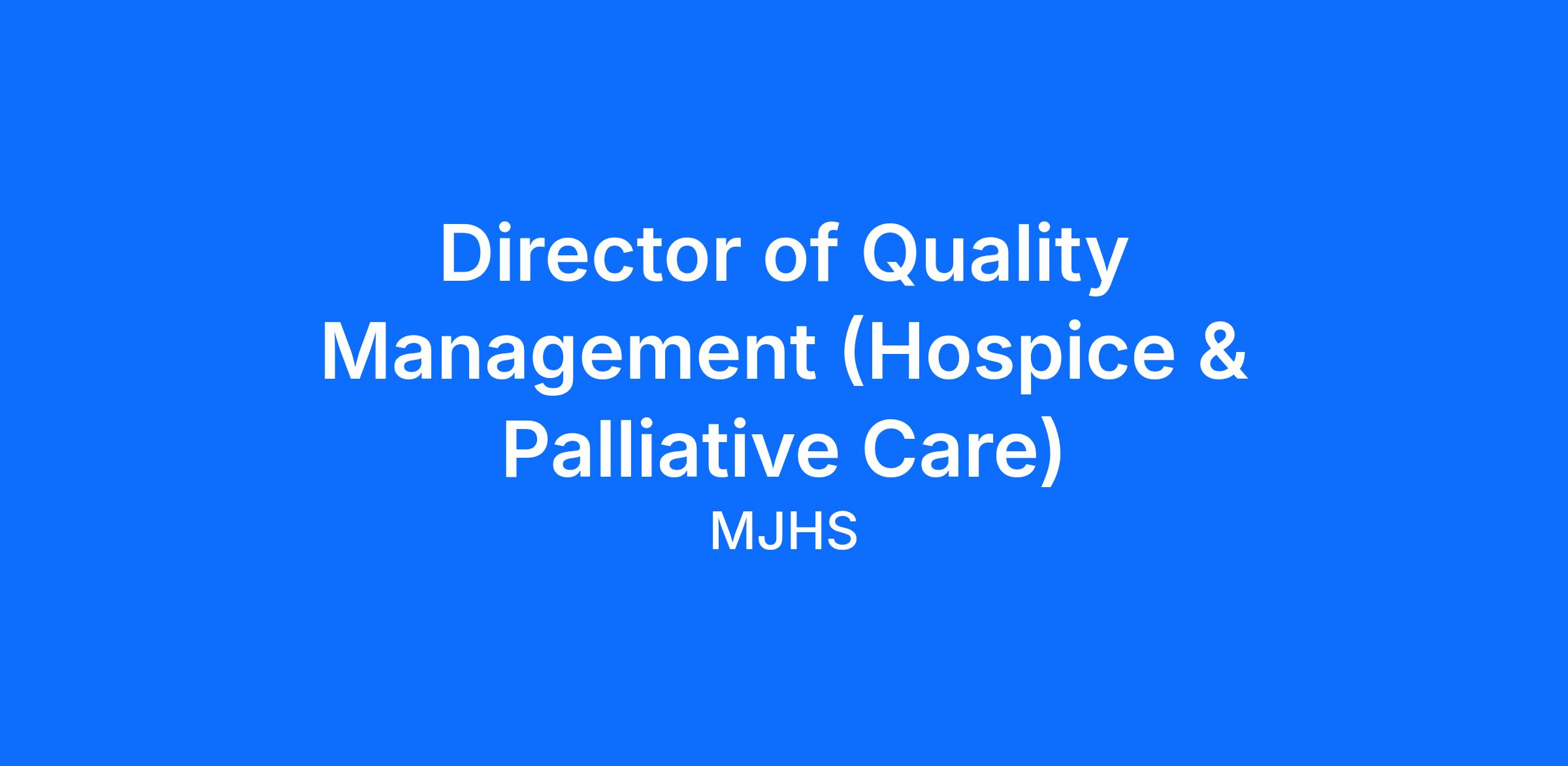 The Director of Quality Management oversees the development, implementation and maintenance of quality management program for Hospice and Palliative Care.