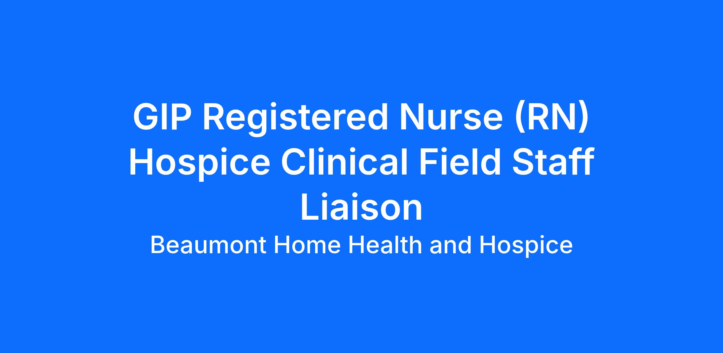 GIP Registered Nurse (RN) Hospice Clinical Field Staff Liaison