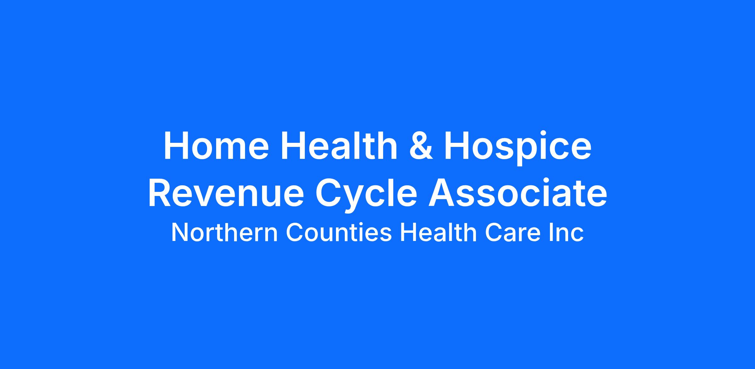 The Home Health & Hospice Revenue Cycle Associate serves as the primary point of contact between the Home Health & Hospice team and the organization's outsourced billing company. This position is responsible for ensuring accurate, timely, and complete communication and coordination of billing-related information and documentation. The RCA helps support the revenue cycle process by facilitating claims resolution, responding to billing inquiries, monitoring denials and reimbursements, and ensuring compliance with payer requirements.