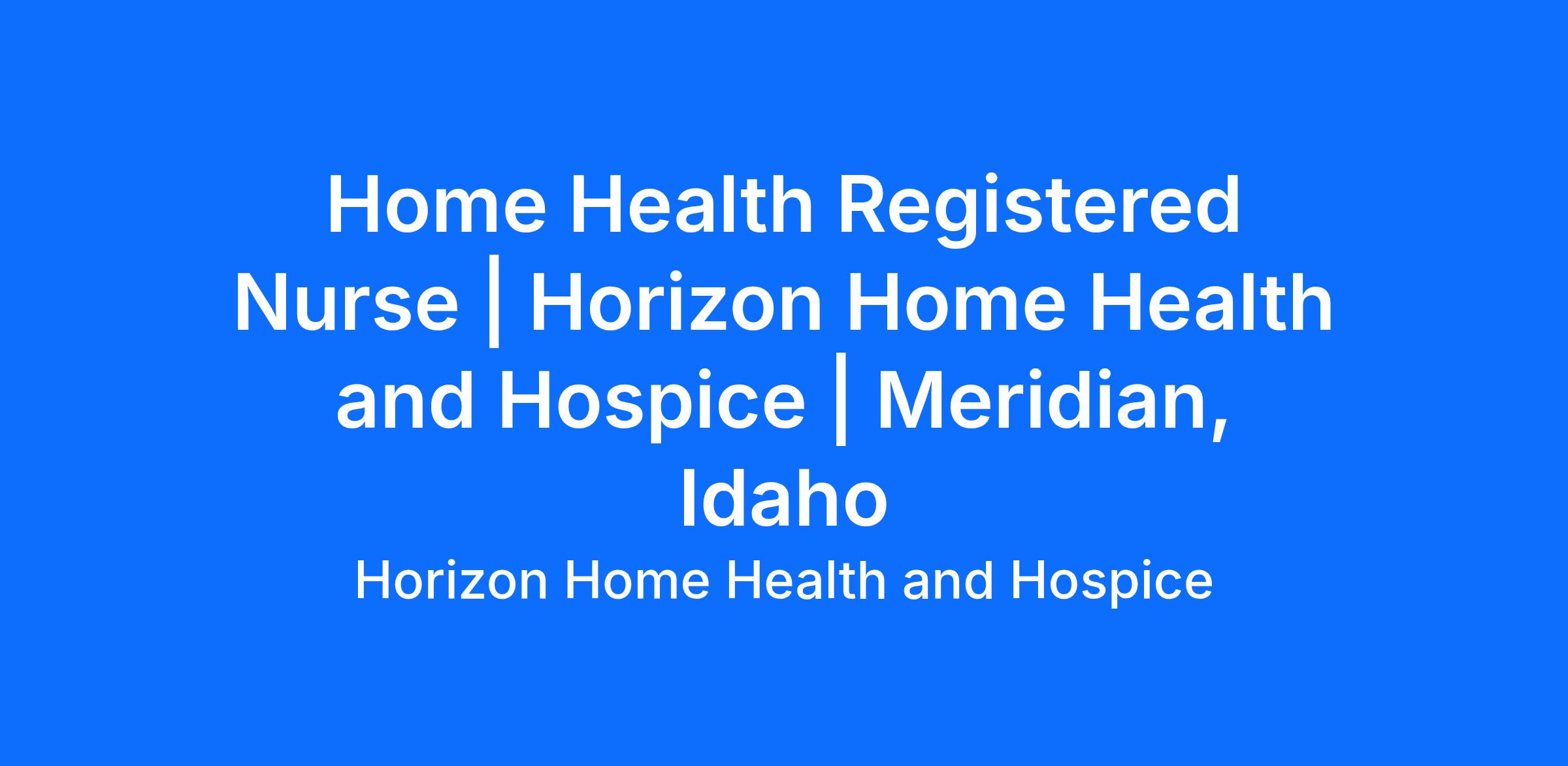 Do you have a passion for health care and a passion for life? If so, join the team that is committed to providing excellence in nursing and life-changing care! Horizon Home Health & Hospice is looking for nurses in the Merdian, Idaho area who are compassionate, have strong clinical skills and enjoy being a part of an amazing team. To learn more about Horizon Home Health & Hospice, please visit www.horizonhh.com