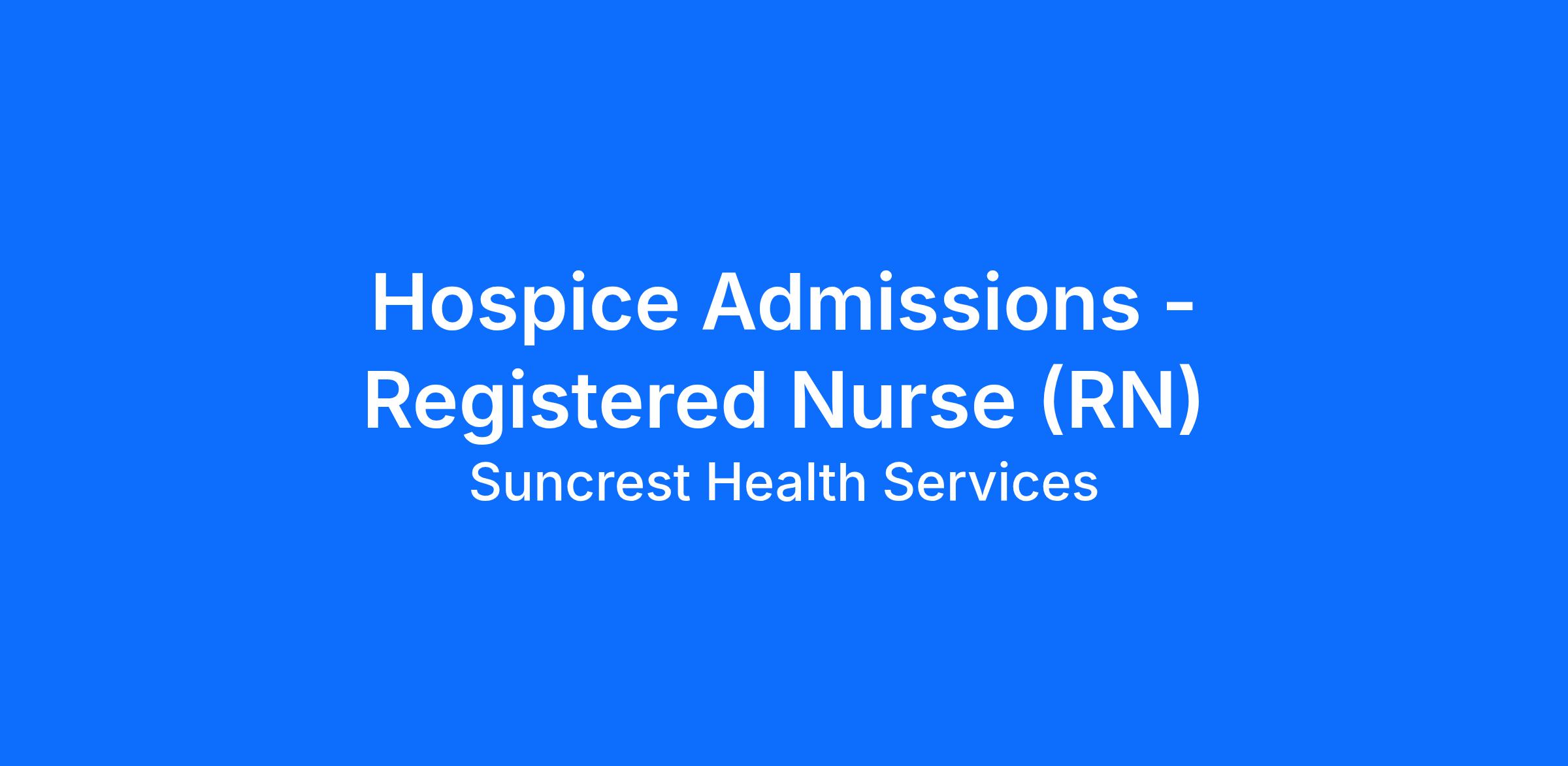 Hospice Admissions - Registered Nurse (RN)