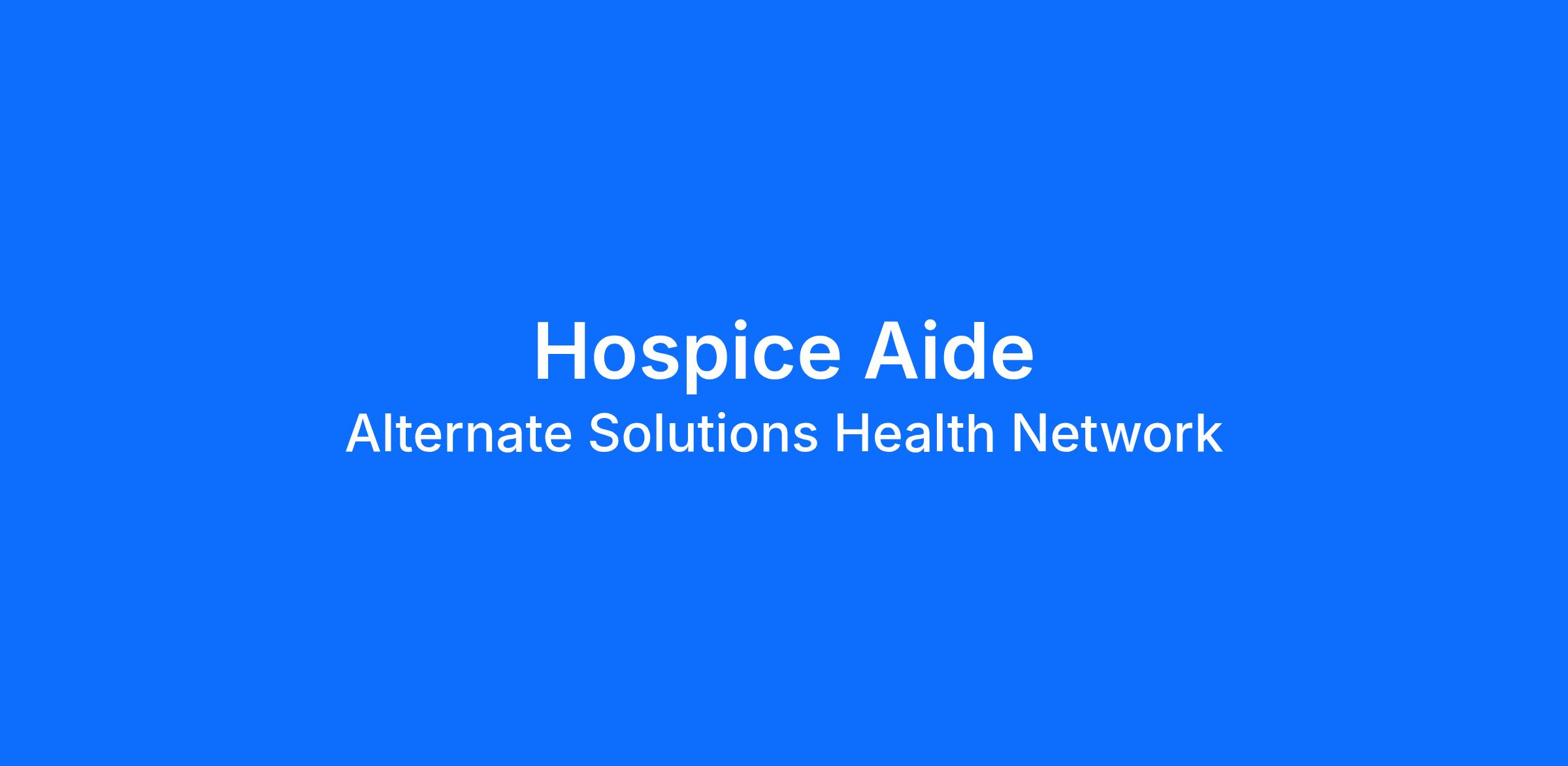 As Hospice Aide the work you do every day makes a difference in the lives of our patients. As a Hospice Aide you are an essential member of the Hospice team by performing various services for a patient as necessary to meet the patient's personal needs and to promote comfort.
