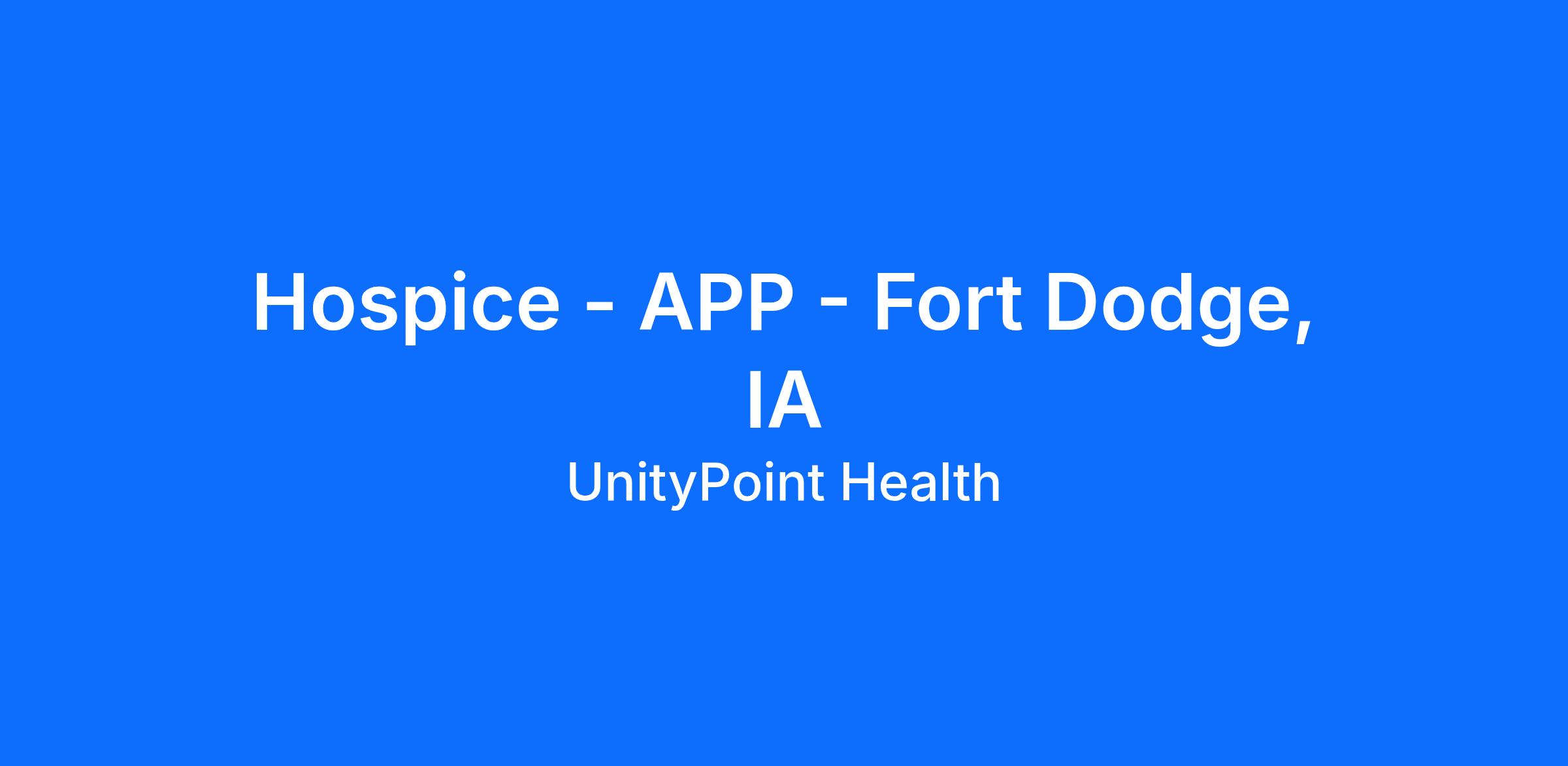 UnityPoint Clinic is actively recruiting for a Hospice APP to join our team in Fort Dodge, IA