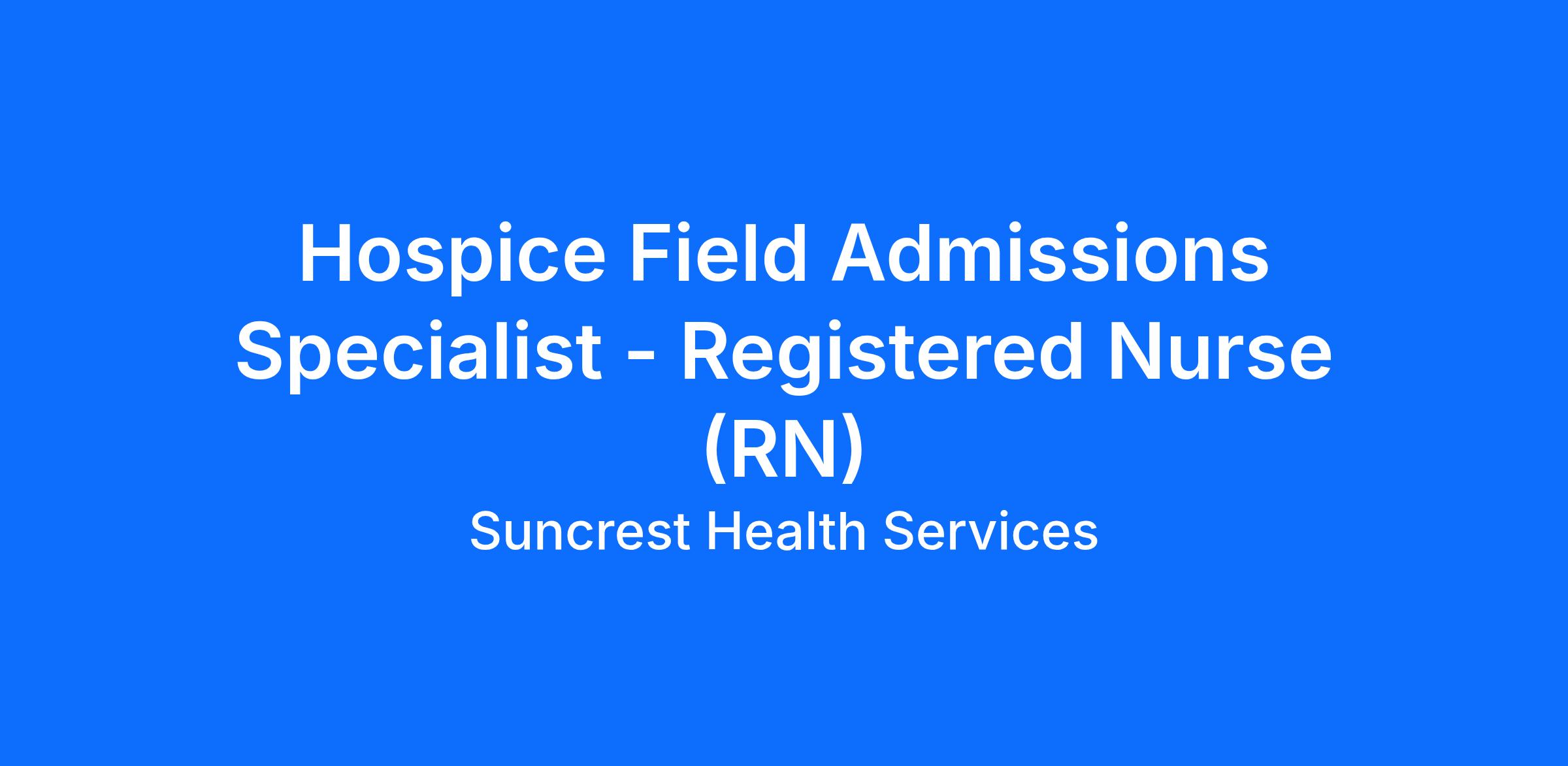 We are seeking an experienced hospice RN to join our team as an Admissions RN. This role will work Tuesday-Saturday from 930am-6pm.