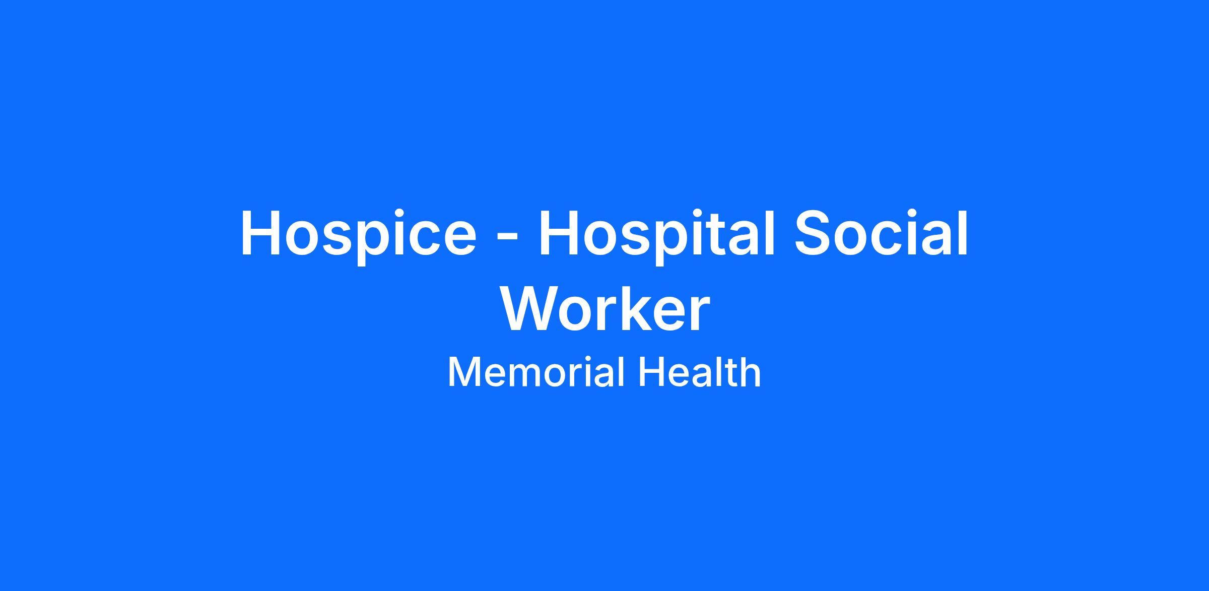 The Hospice Transitions Social Worker approaches the hospice discharge planning process with a patient-centered approach during a time when curative measures no longer add quality-of-life. The Hospice Transitions SW is responsible for evaluating and establishing a plan of care for Memorial Medical Center patients referred for hospice services. This includes detailed coordination between providers, agencies, colleagues, the patient, and the family. The Hospice Transitions SW assesses the needs of the patients and provides counseling to patients and their families while coordinating the transition to hospice and promoting continuity of care. Embodies the Memorial Health System Performance Excellence Standards of Safety, Quality, Integrity and Stewardship that support our mission, vision and values.