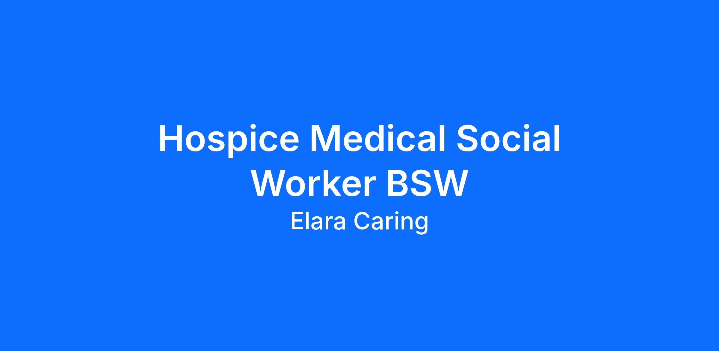 At Elara Caring, we care where you are and believe the best place for your care is where you live. We know there’s no place like home, and that’s why our teams continue to provide high-quality care to more than 60,000 patients each day in their preferred home setting. Wherever our patients call home and wherever they are on their journey of health, we care. Each team member has a part to play in this mission. This means you have countless ways to make a difference as a Medical Social Worker (BSW/SWA). Being a part of something this great starts by carrying out our mission every day through your true calling: developing an amazing team of compassionate and dedicated healthcare providers.