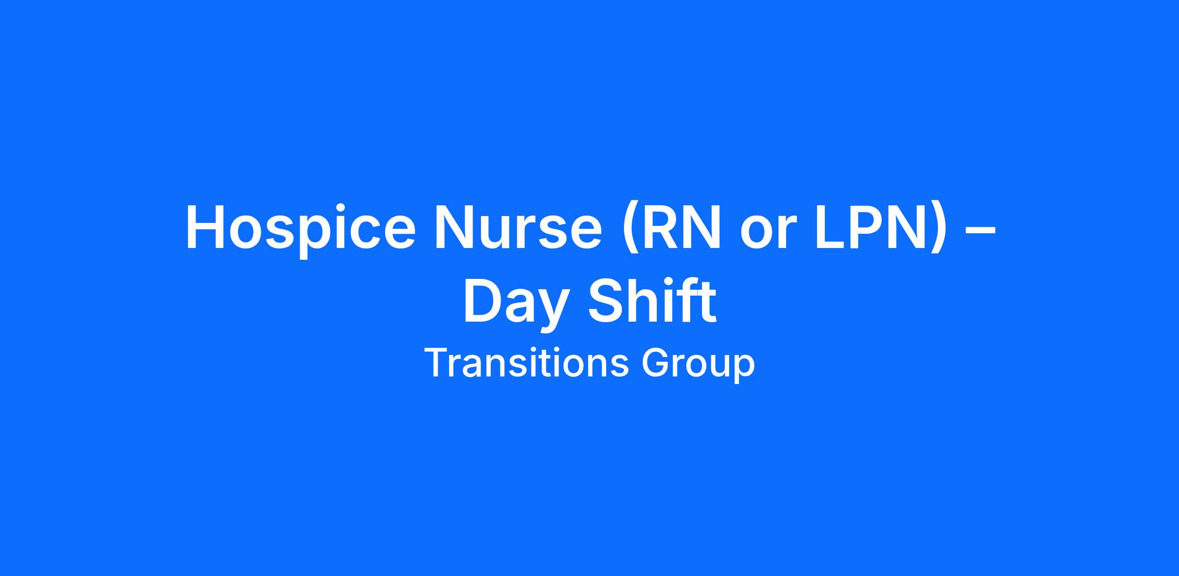 Hospice Nurse (RN or LPN) – Day Shift