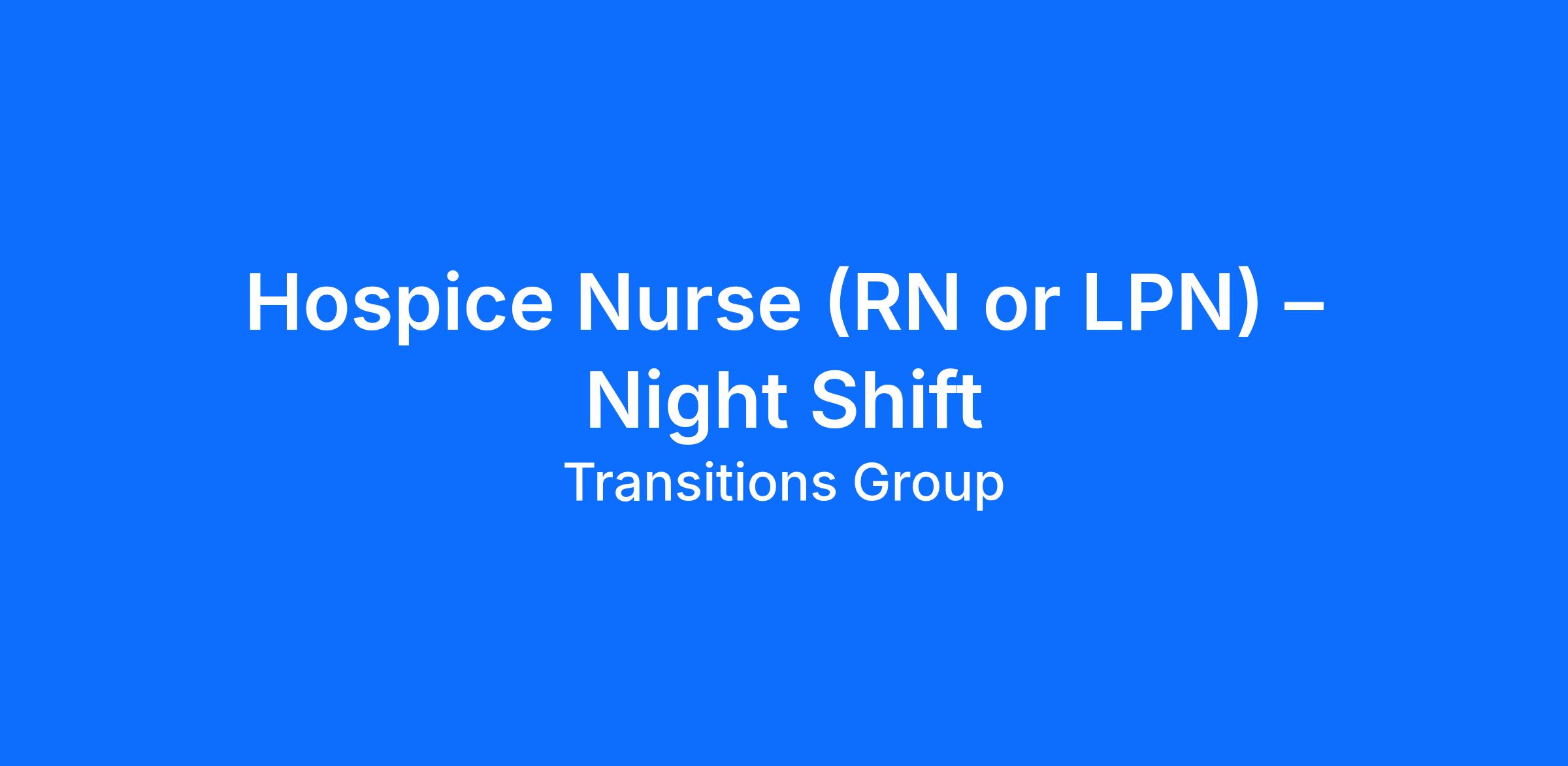 Transitions Care is a leading hospice organization that has changed the hospice experience for patients, families, and team members. Imagine a healthcare company that provides 24/7 access to services in the comfort of the patient's home - providing the physical, emotional, and spiritual support that allows a patient to focus on living.