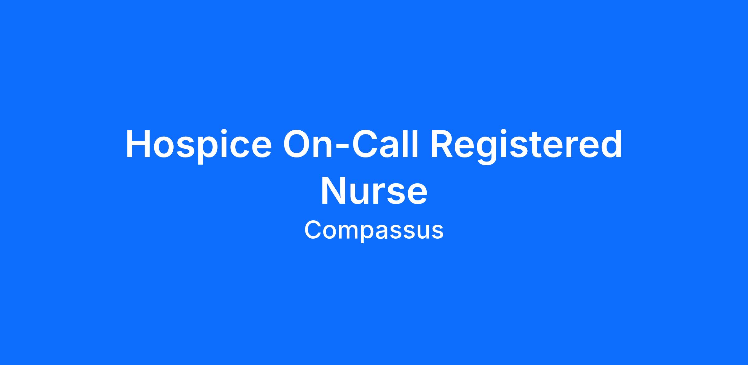 Your position perks as a Hospice On-Call Registered Nurse / RN