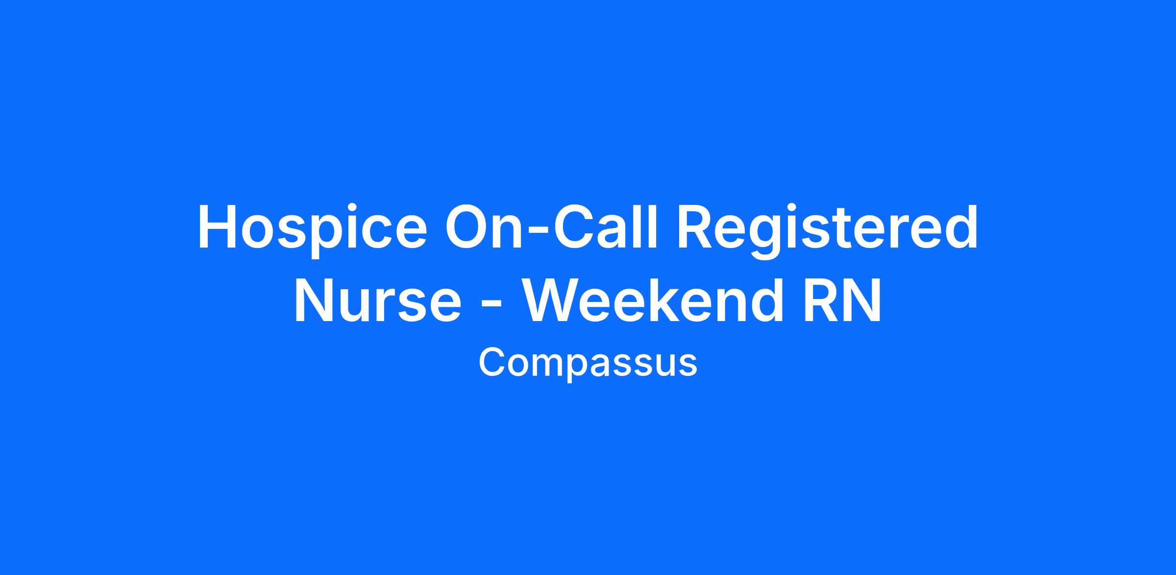 Your position perks as a Hospice On-Call Registered Nurse / RN