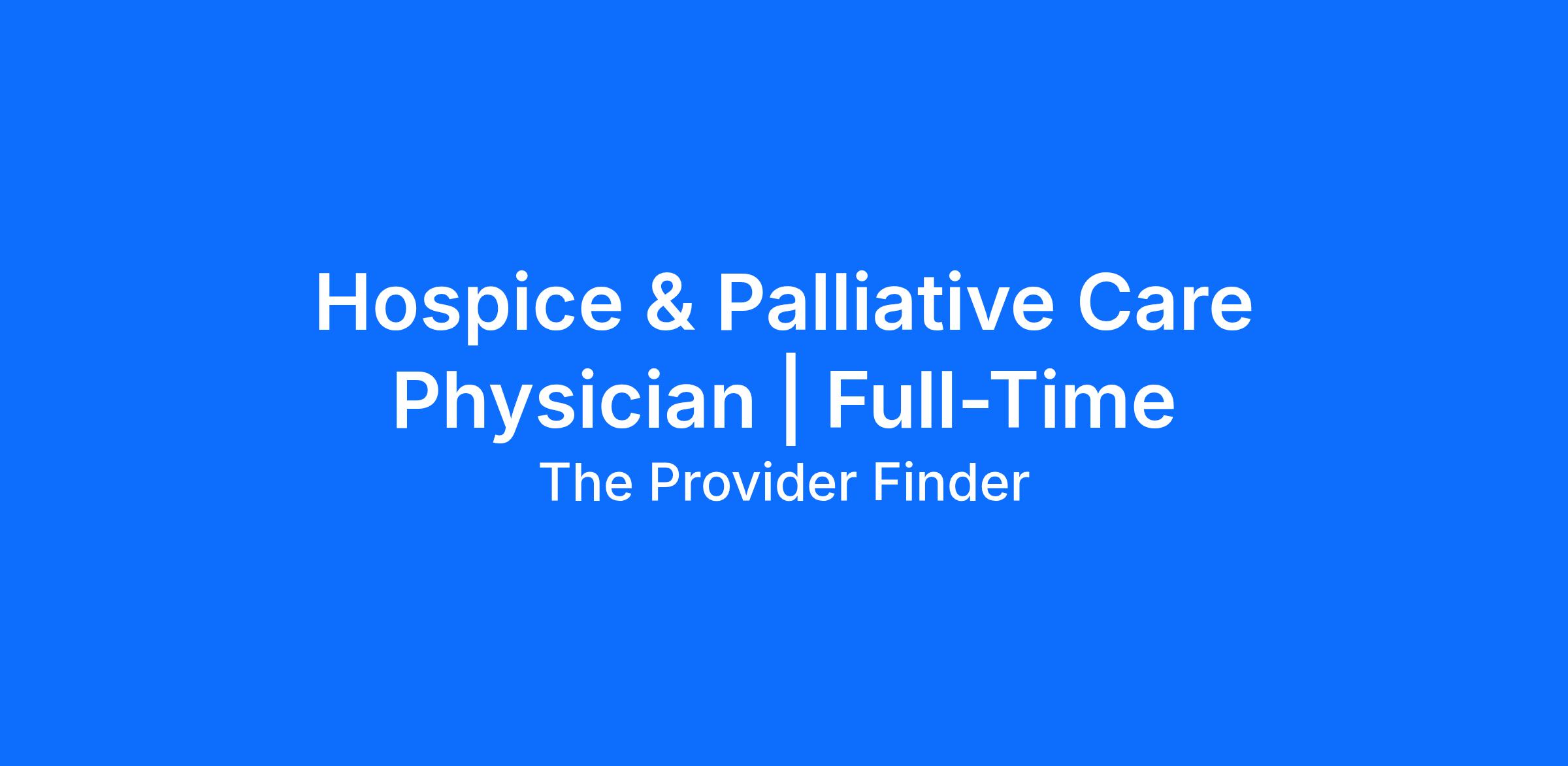 • Board Certified or Board Eligible in Hospice & Palliative Medicine, Internal Medicine, or Family Medicine