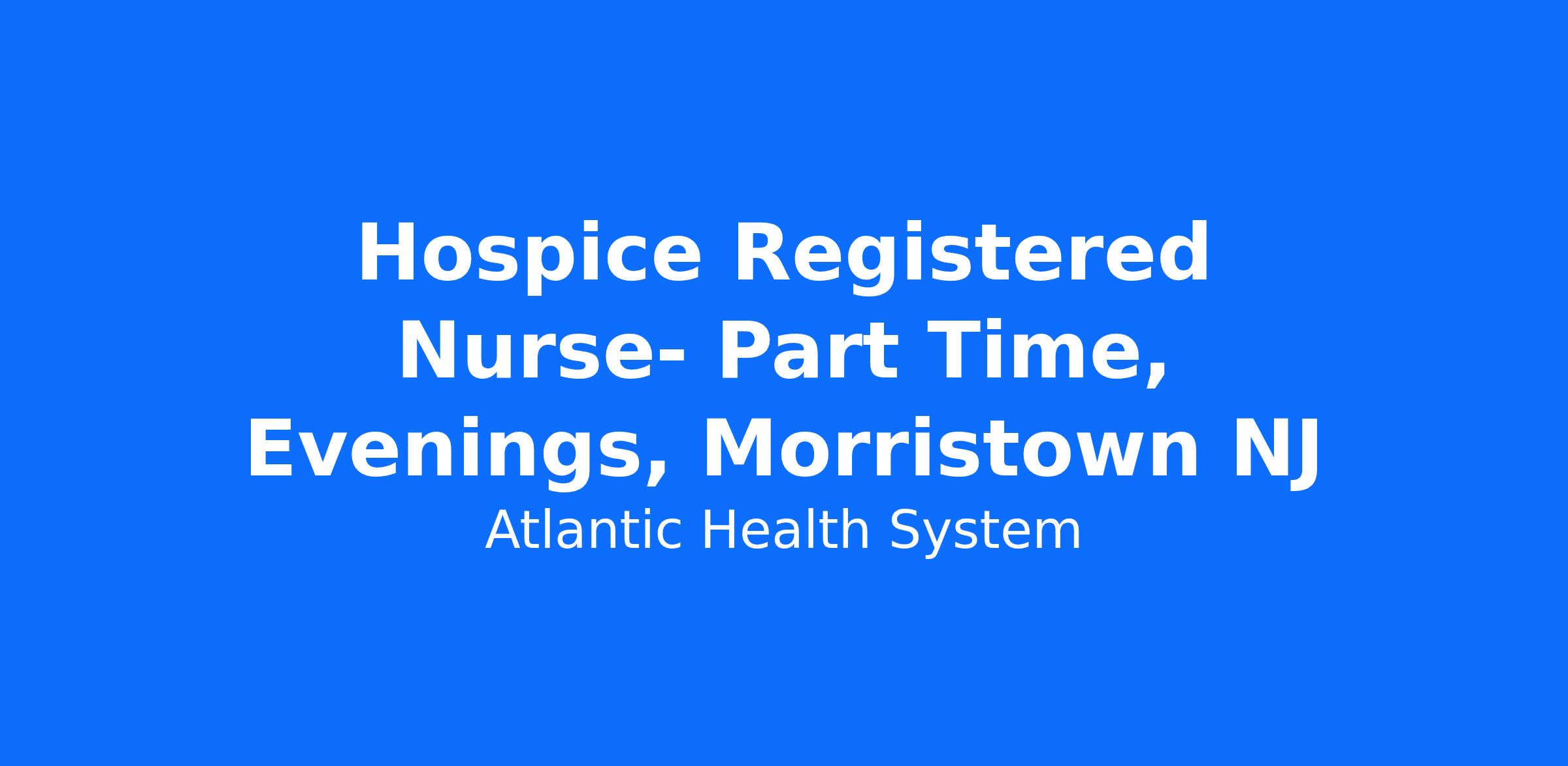 Atlantic Visiting Nurse, part of Atlantic Health System, is seeking a part-time hospice Registered Nurse to work 2 PM to 10 PM in the Morris County area, including weekends and on-call as required by department. In this position you will work with adult and geriatric patients of all backgrounds who require hospice care at one of our hospital sites, sometimes in their homes as needed. You are compassionate, thoughtful, and comfortable working with elderly and terminally ill patients. You will be responsible for managing a heavy caseload (4 patients a day); time management skills are essential. However, it is important to provide each patient with the time and attention necessary to meet his or her needs.