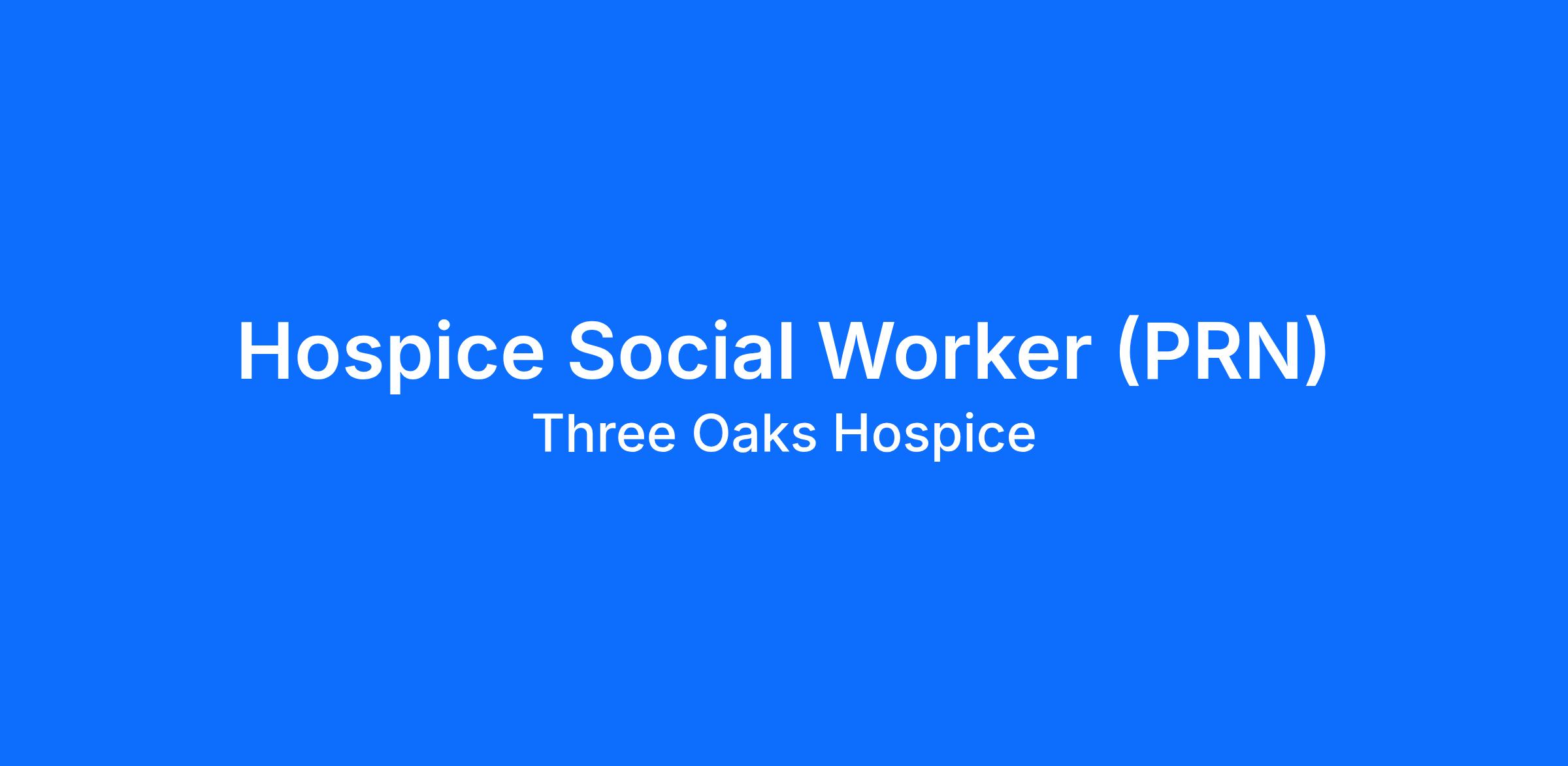 Come join our team at Three Oaks Hospice and our sister companies—Agape Hospice Care, Sage Hospice, Primary and Palliative Care, Elevation Hospice of Colorado, Elevation Hospice, and Primary and Palliative Care of Utah. We are growing and looking for compassionate professionals who want to make a meaningful impact while building a rewarding career in hospice and palliative care.