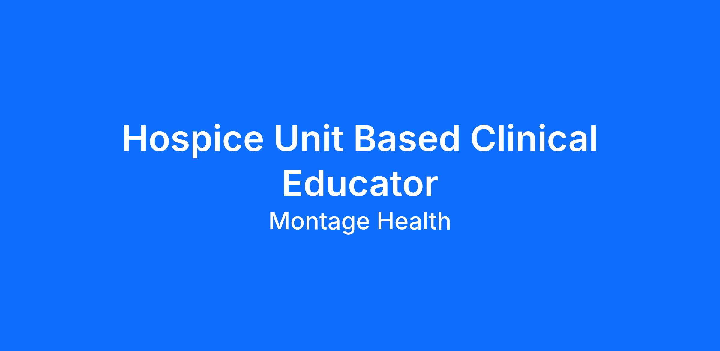 Educator roles and responsibilities include: duties such as onboarding and orientation, competency management, design and facilitation of role development programs, and provision of education through competent learning facilitation. Success in this role requires the ability to effectively communicate and collaborate with team members and stakeholders internal and external, with particular attention to education and support of facility staff caring for hospice patients. This role requires demonstrated knowledge and understanding of rules, regulations, and clinical practice standards governing hospice care.