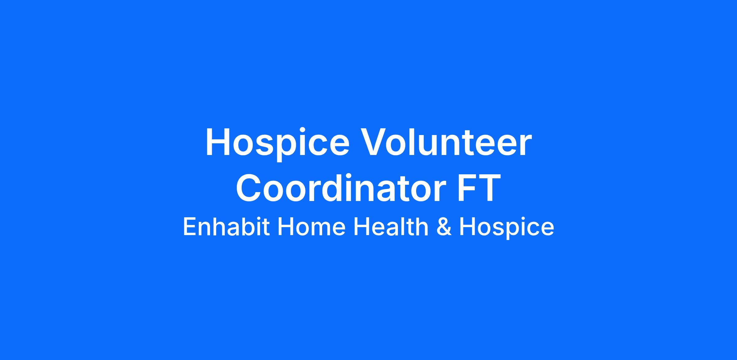 Enhabit Home Health & Hospice is searching for a Hospice Volunteer Coordinator to join our team. The Volunteer Coordinator is responsible for all aspects of the hospice volunteer program and ensures the right volunteers are matched with the right families during the difficult transition.