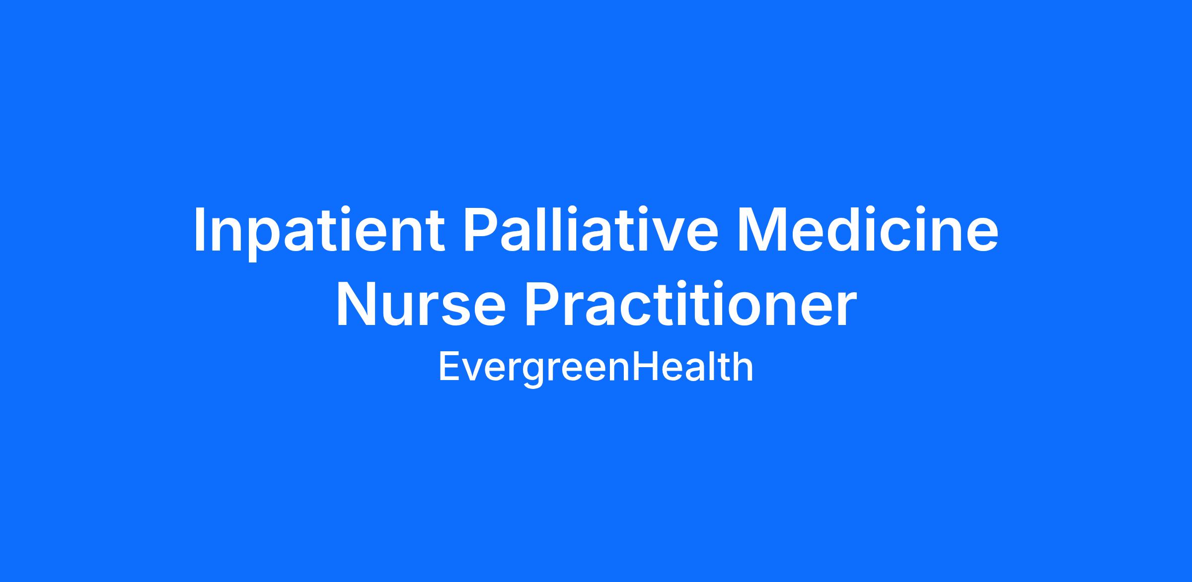 EvergreenHealth in Kirkland, WA is recruiting for an Inpatient Palliative Medicine Nurse Practitioner to join our exceptional, expanding Palliative Medicine team. Join a dynamic group of Palliative Medicine providers and interdisciplinary team members in a Seattle-area healthcare system recognized as a local leader in serious illness and end-of-life care.