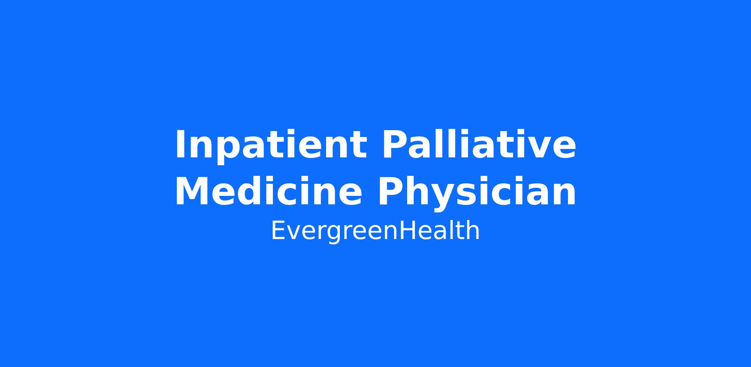 EvergreenHealth in Kirkland, WA is recruiting for an Inpatient Palliative Medicine Physician to join our exceptional, expanding Palliative Medicine team. Join a dynamic group of Palliative Medicine providers and interdisciplinary team members in a Seattle-area healthcare system recognized as a local leader in serious illness and end-of-life care.