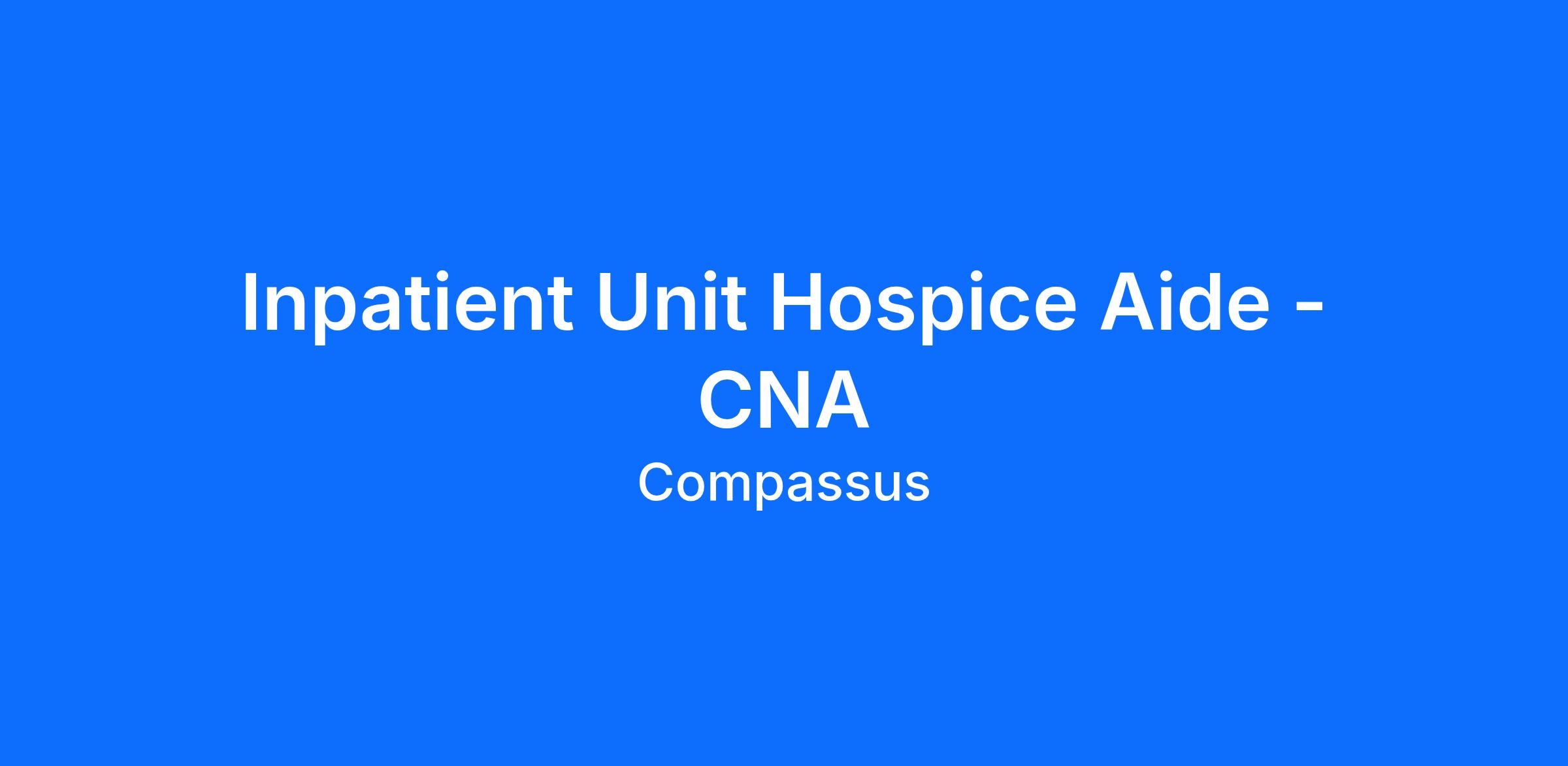 The Inpatient Unit Hospice Aide is responsible for modeling the Compassus values of Compassion, Integrity, Excellence, Teamwork, and Innovation and for promoting the Compassus philosophy, using the 6 Pillars of Success as the foundation. S/he is responsible for upholding the Code of Ethical Conduct and for promoting positive working relationships within the company, among all departments, and all external stakeholders. The Inpatient Unit Hospice Aide insures that the center is maintained in a clean and sanitary condition at all times to provide for the care and welfare of the customers in a healthful environment. In addition, s/he ensures that good housekeeping services are performed in every department of the center and are planned in cooperation with the department head. This role may also fill in as needed as a Hospice Aide-House Mother.