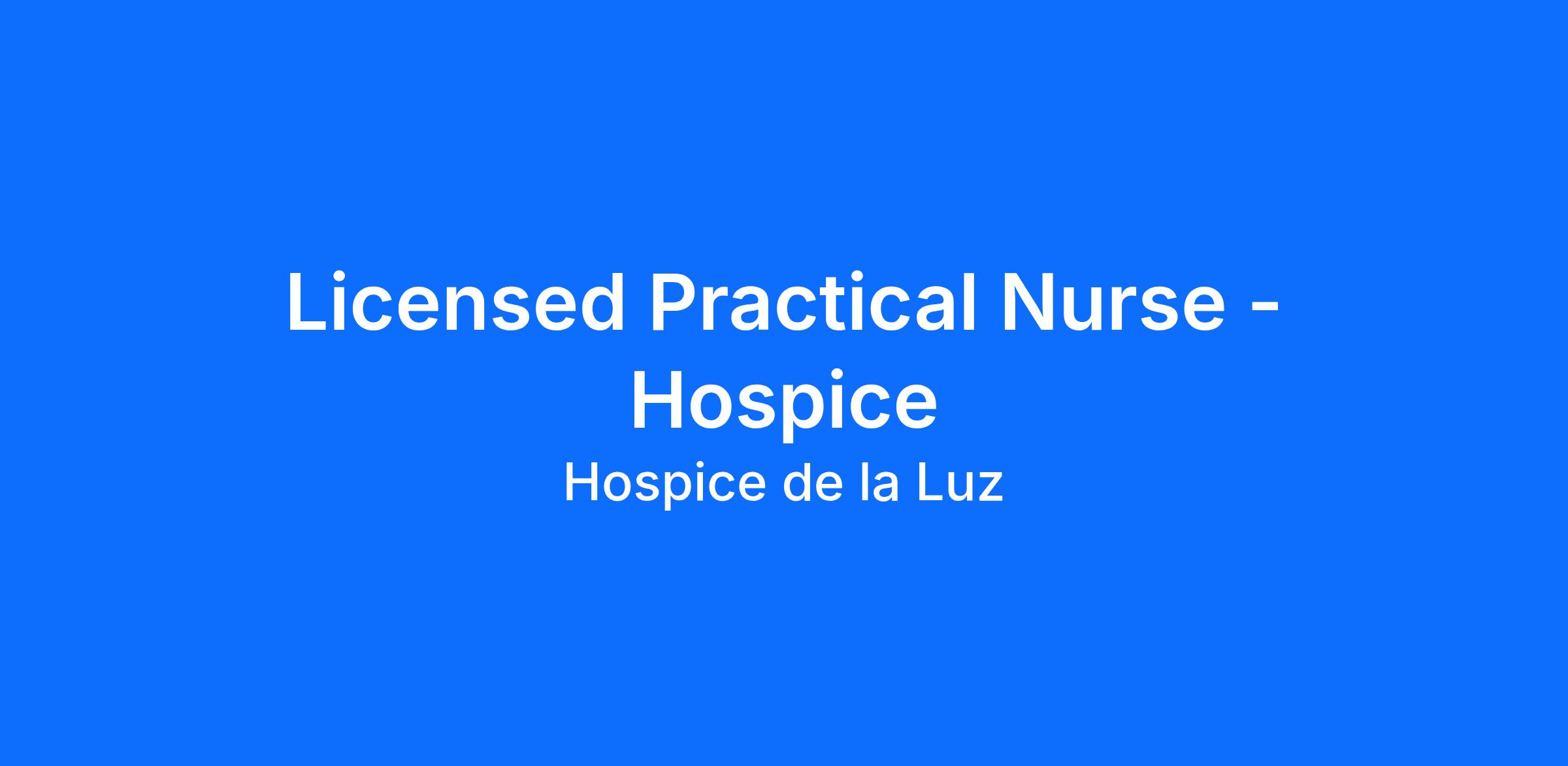 Hospice de la Luz is looking for PRN Licensed Practical Nurses (LPN / LVN) to join our dedicated team to provide community-based care for our patients currently receiving home health services in the Albuquerque, NM region and surrounding areas.