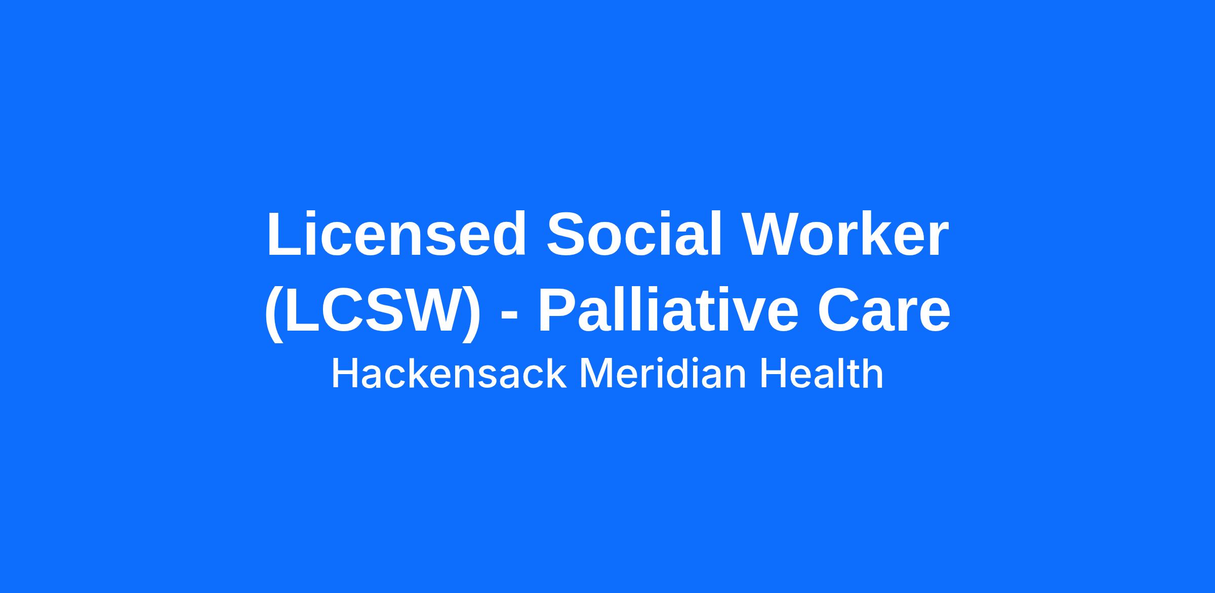 Licensed Social Worker (LCSW) - Palliative Care