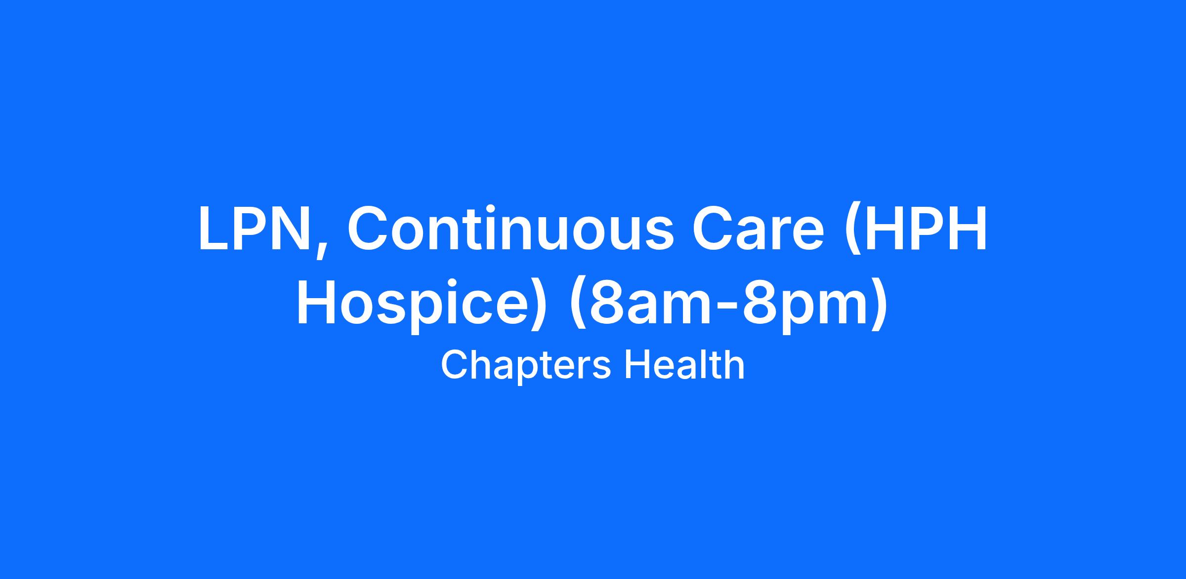 Under RN supervision, the LPN, Continuous Care is responsible for providing nursing interventions and teaching skills to maximize patient comfort and to enhance the quality of life to the patient/family unit.