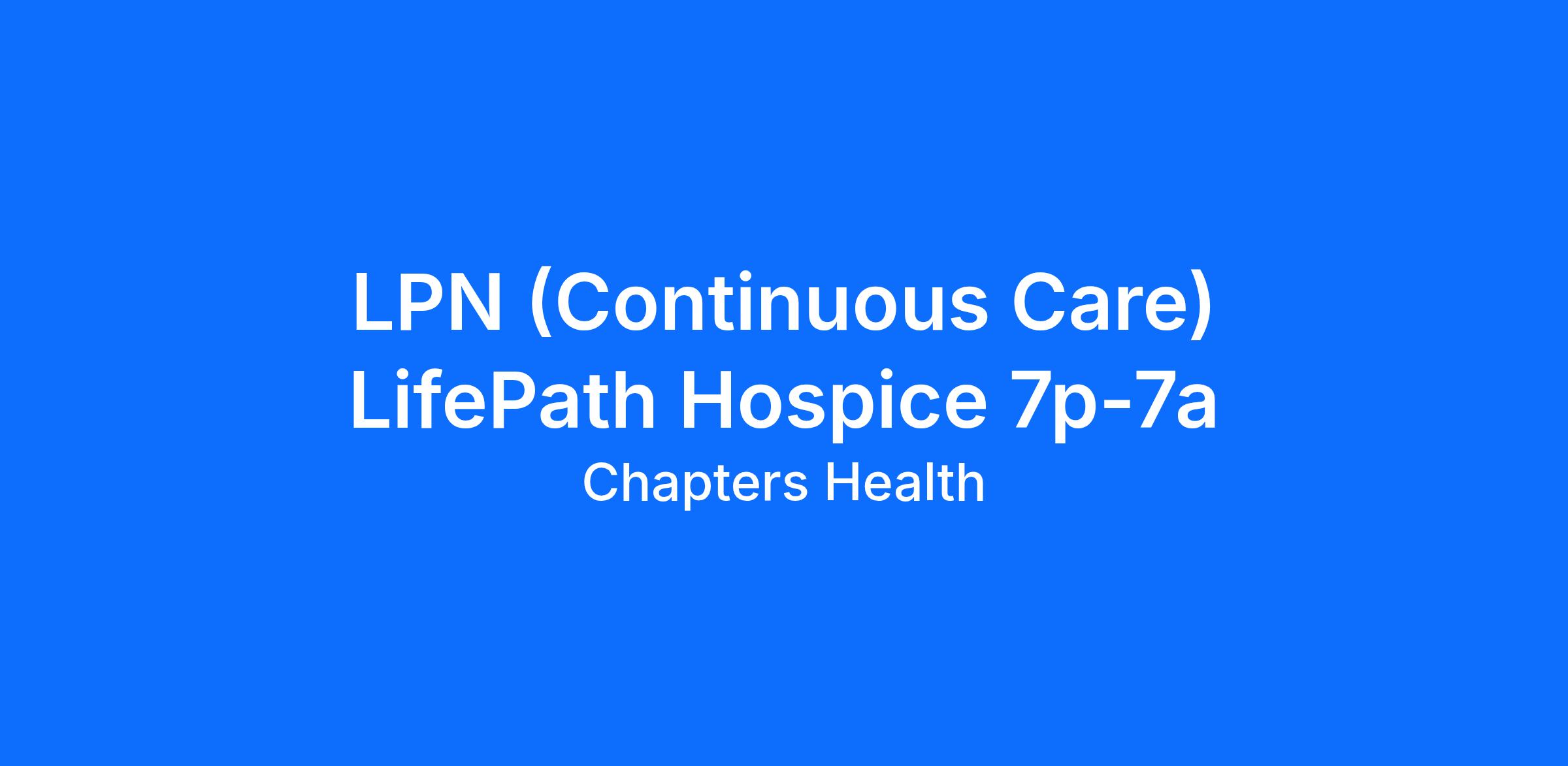 Under RN supervision, the LPN, Continuous Care is responsible for providing nursing interventions and teaching skills to maximize patient comfort and to enhance the quality of life to the patient/family unit.