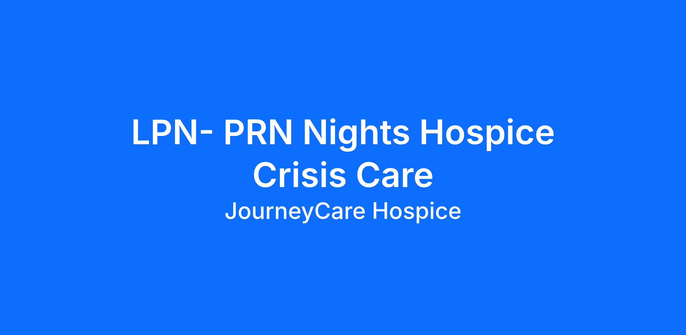 JourneyCare Hospice is seeking a Hospice LPN to join our growing Crisis Care team on a PRN basis! Competitive salaries and flexible hours!