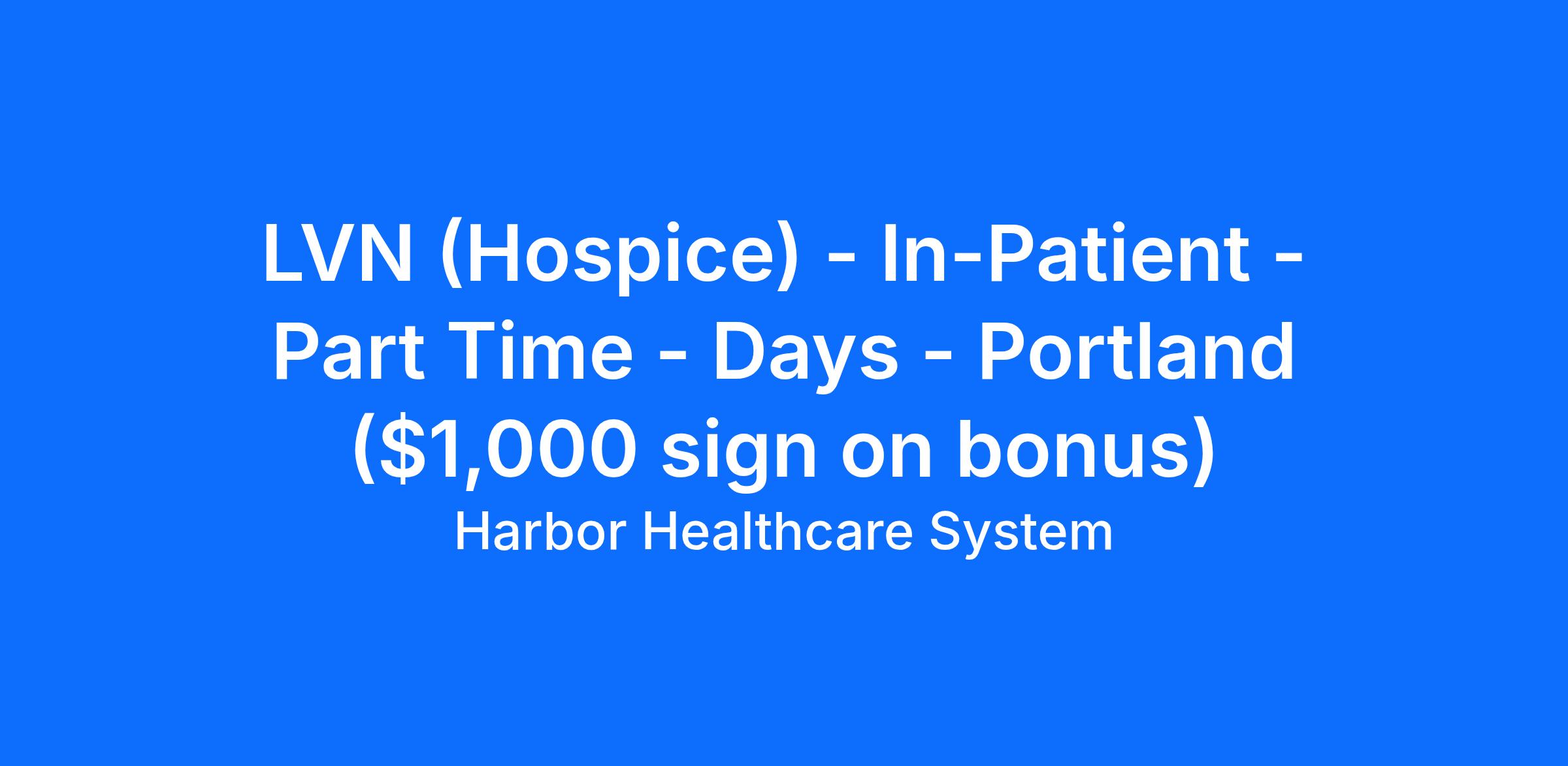 LVN (Hospice) - In-Patient - Part Time - Days - Portland ($1,000 sign on bonus)