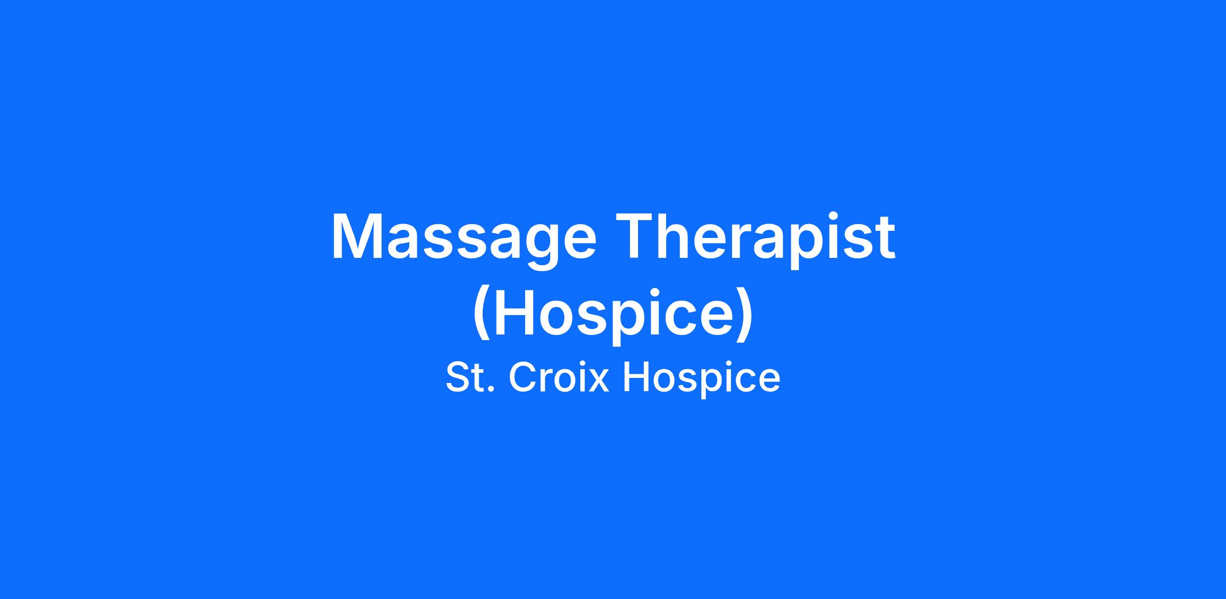 Massage therapists at St. Croix Hospice work alongside clinical teams to provide therapeutic touch that complements medical care and brings additional relief and comfort to patients. Using specialized techniques and compassionate care, they help ease physical discomfort while creating a sense of calm and connection. This position offers the opportunity to combine clinical skills with genuine human connection, making a real impact through the healing power of touch as part of an integrated care approach.