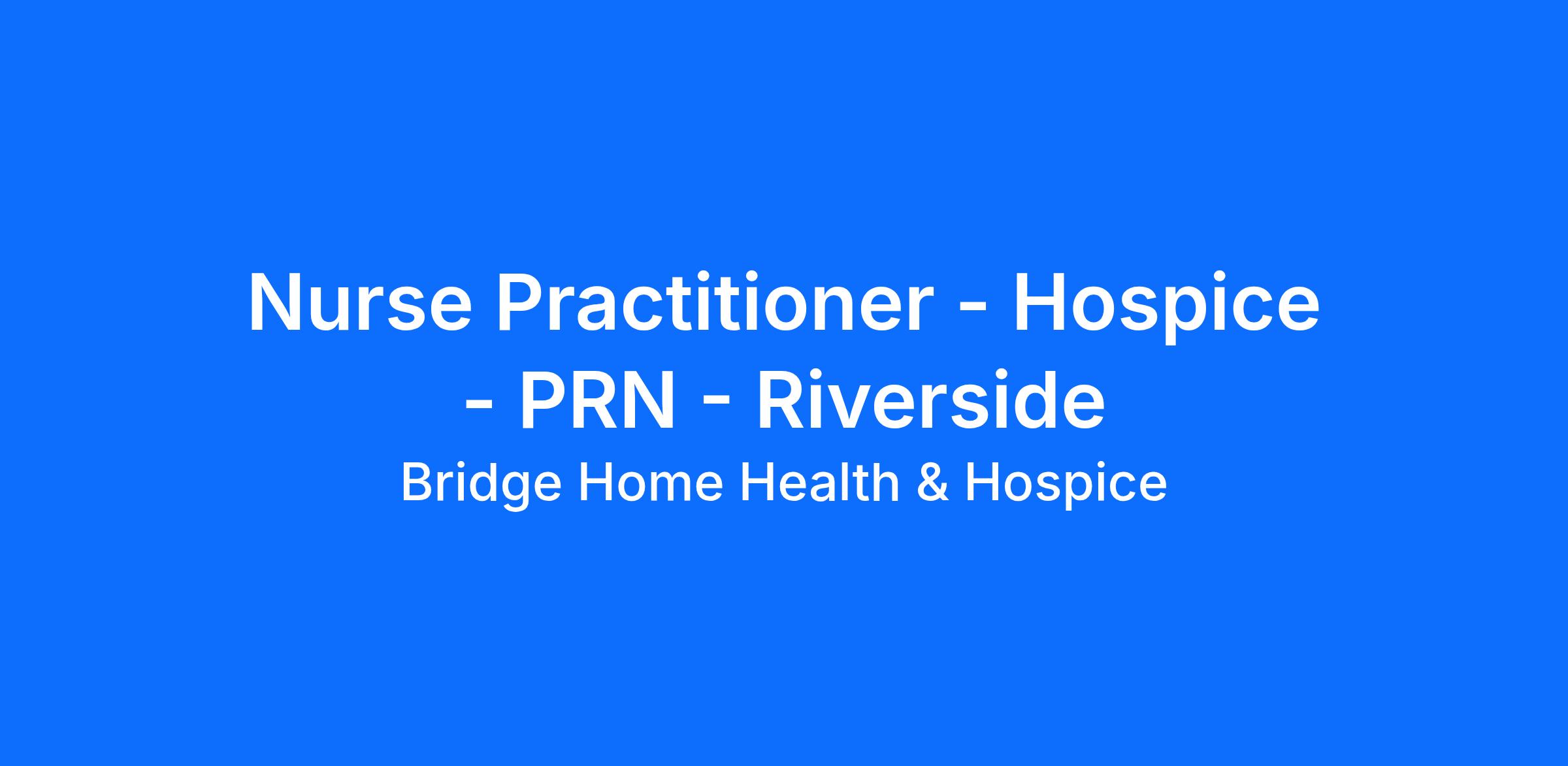 Nurse Practitioner - Hospice - PRN - Riverside