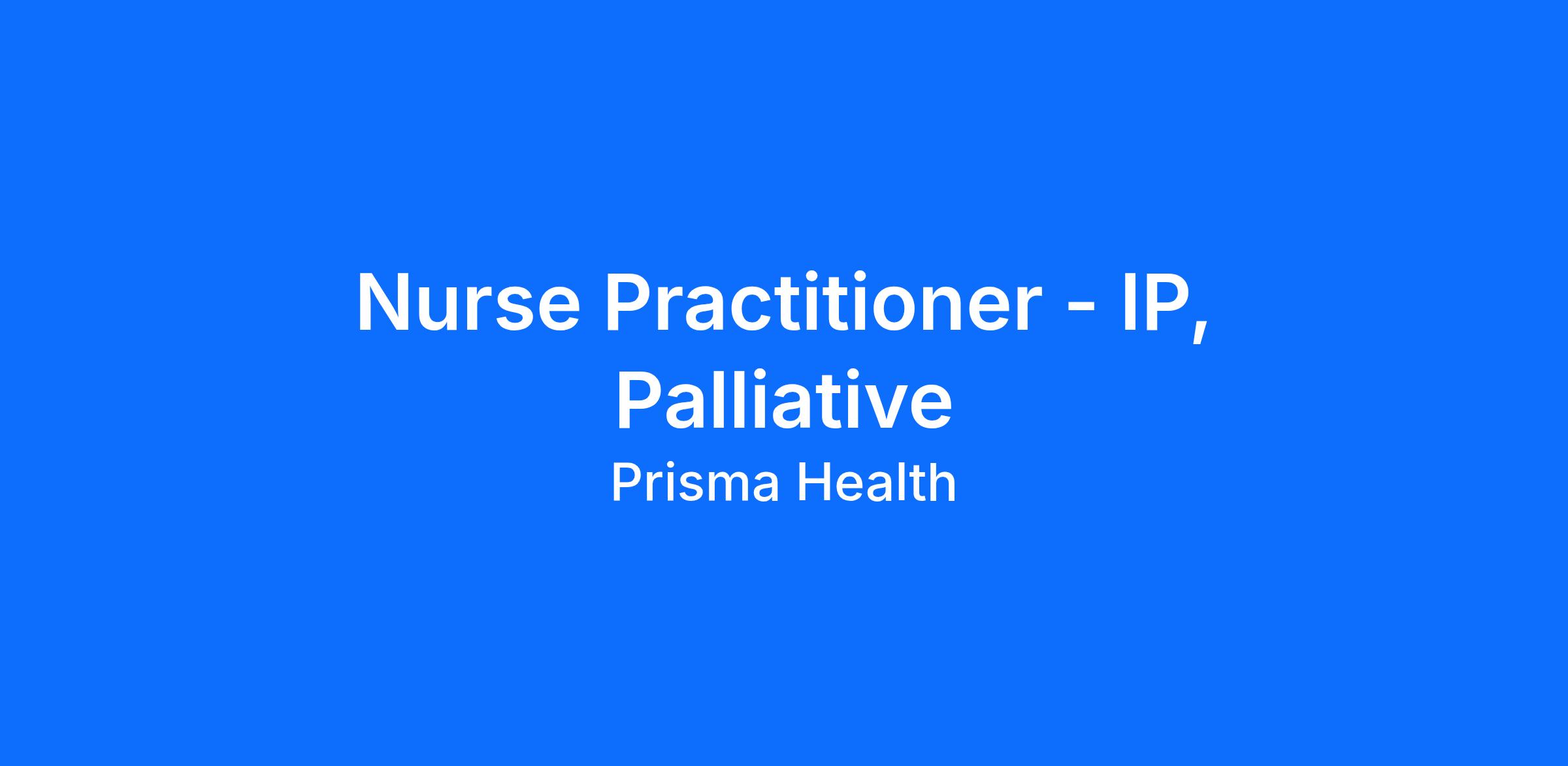22121000 Palliative Medicine-Practice OperationsShare your talent with us! Our vision is simple: to transform healthcare for the benefits of the communities we serve. The transformation of healthcare requires talented individuals in every role here at Prisma Health.