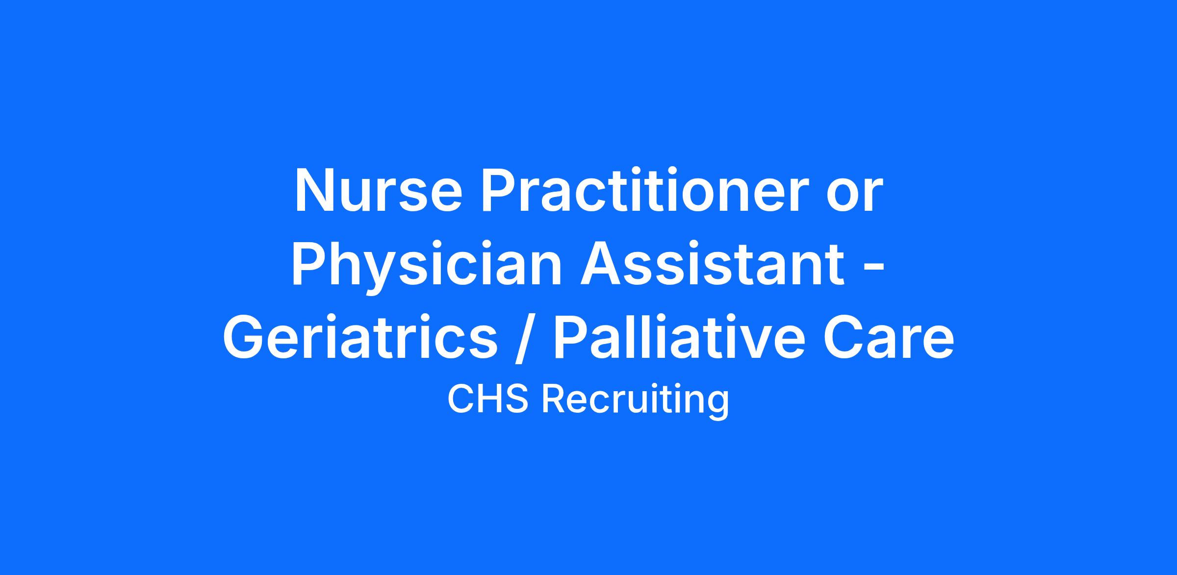 Nurse Practitioner or Physician Assistant - Geriatrics / Palliative Care