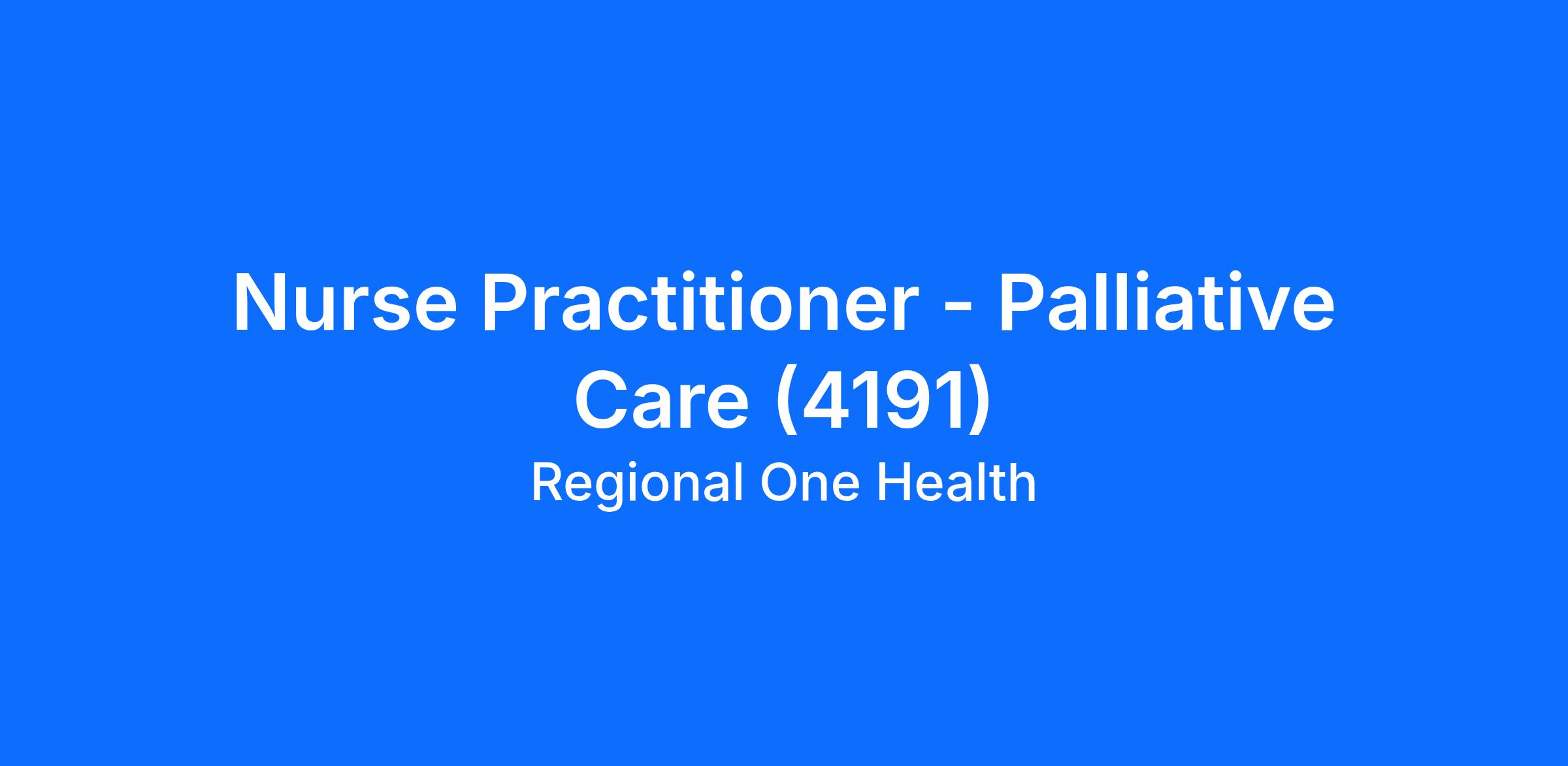 DescriptionUT Regional One Physicians is currently seeking a Nurse Practitioner for our Palliative Care Department.
