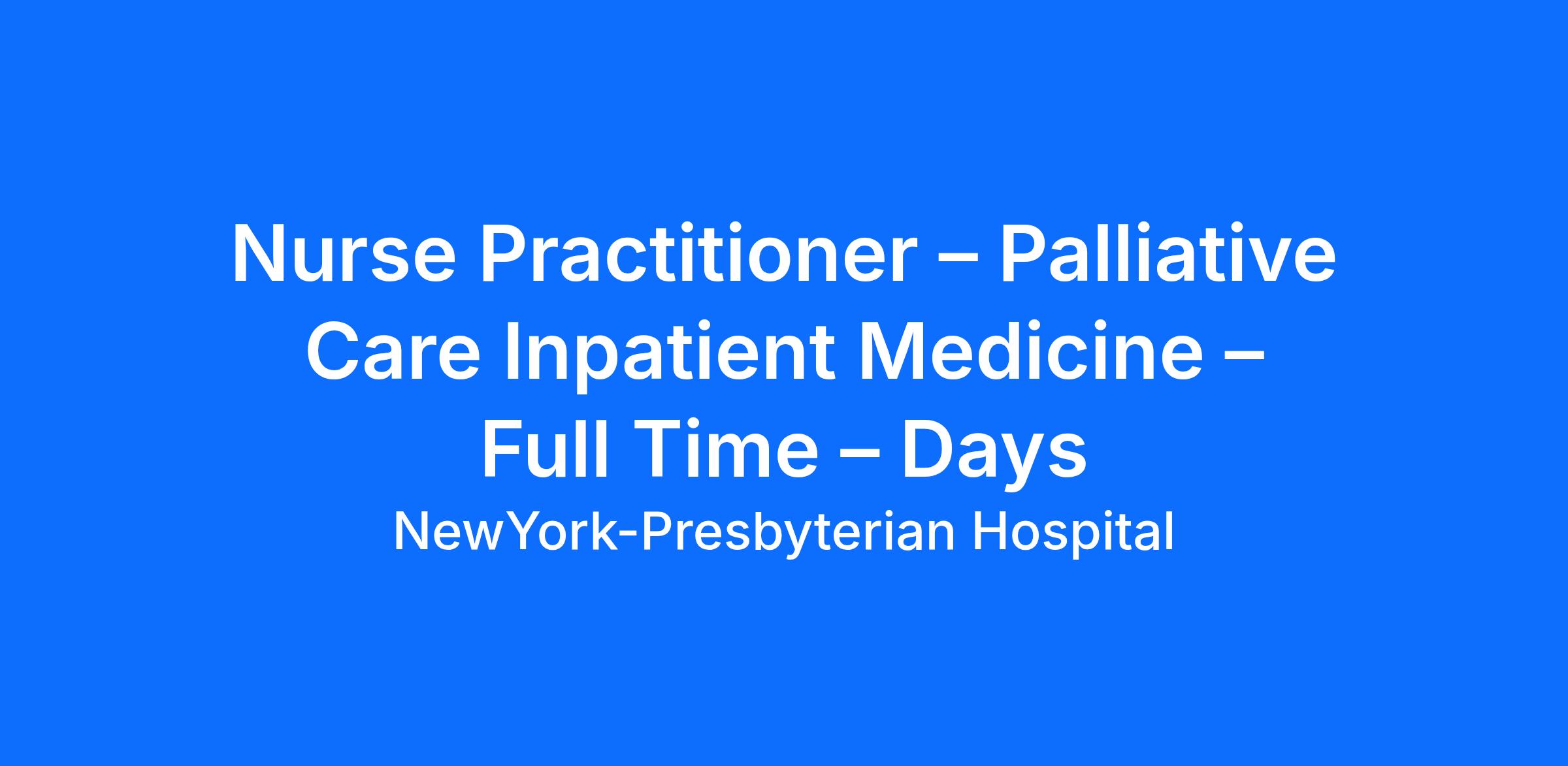 Nurse Practitioner – Palliative Care Inpatient Medicine– Full Time – Days