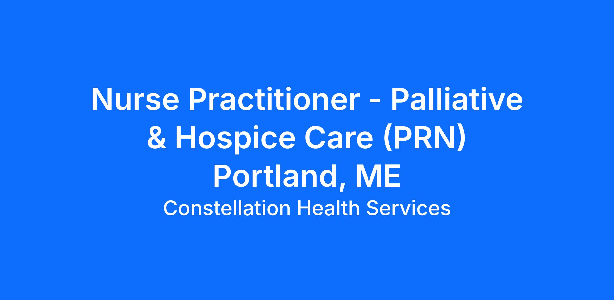 Nurse Practitioner for Palliative & Hospice Care on a (PRN) basis to assist