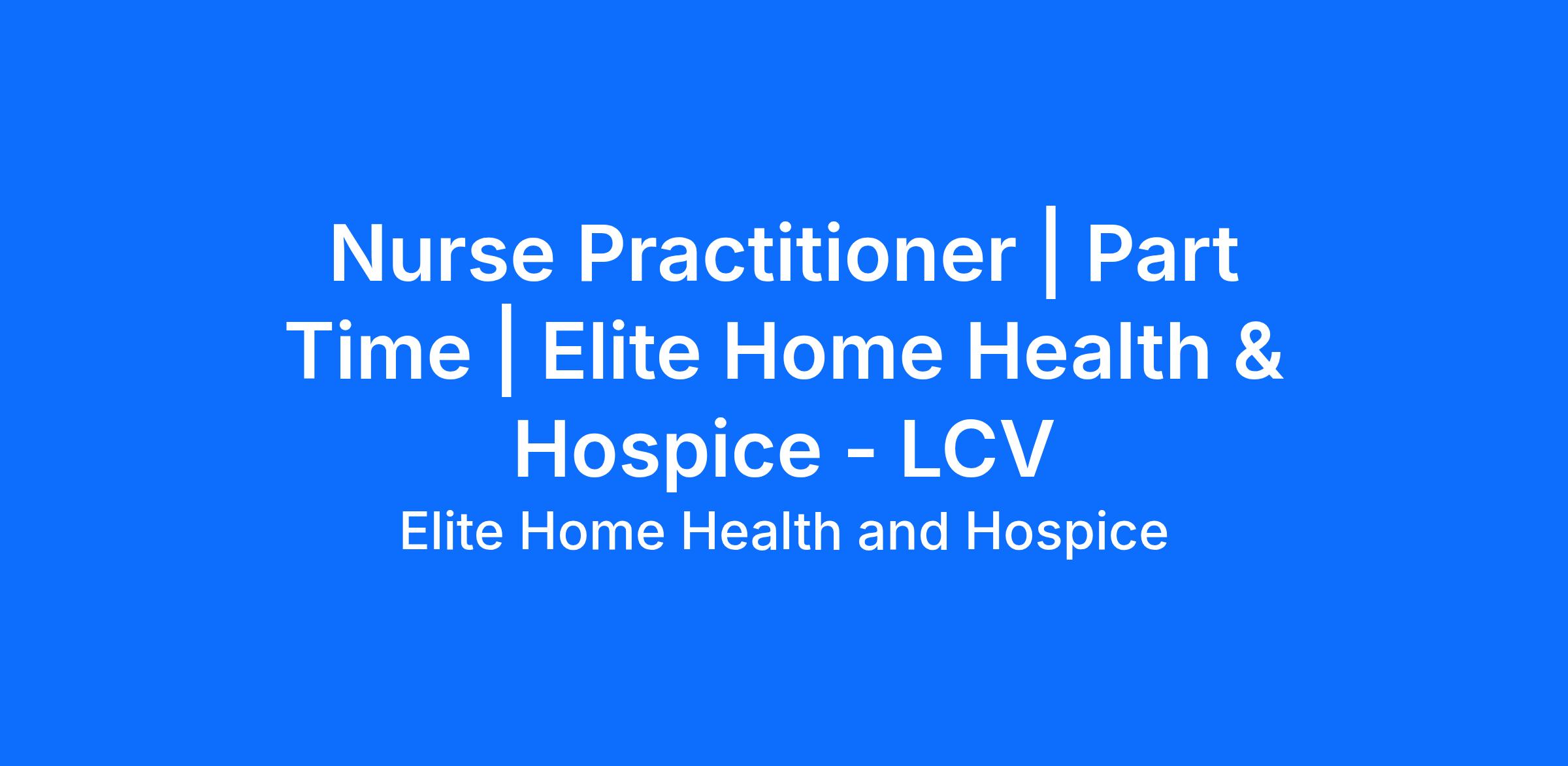Elite is seeking compassionate and dedicated nurse practitioners to join our team in providing exceptional home health and hospice care. The agency is driven by our CAPLICO core values - Celebration, Accountability, Passion for Learning, Love One Another, Intelligent Risk Taking, Customer Second, and Ownership. These principles guide our commitment to delivering high-quality, personalized care that allows patients to remain in the comfort of the own homes. As an NP with Elite, you'll play a vital role in "Keeping Our Community Home", fostering meaningful connections, and ensuring patients receive the best possible care. Join us in making a difference in the lives of those we serve, while embracing a culture of compassion, respect, and excellence.