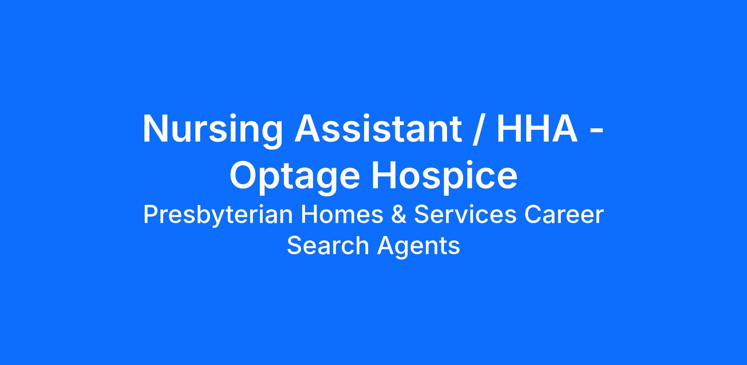 Presbyterian Homes - Optage Hospice is seeking an On-Call Nursing Assistant/Home Health Aide to join the team. This position will be primarily assigned to work at the Hudson and New Richmond Wi, locations but must be willing to back fill for absences within the Twin Cities region. Must provide own transportation, mileage reimbursement available. Must have current Wisconsin certification.